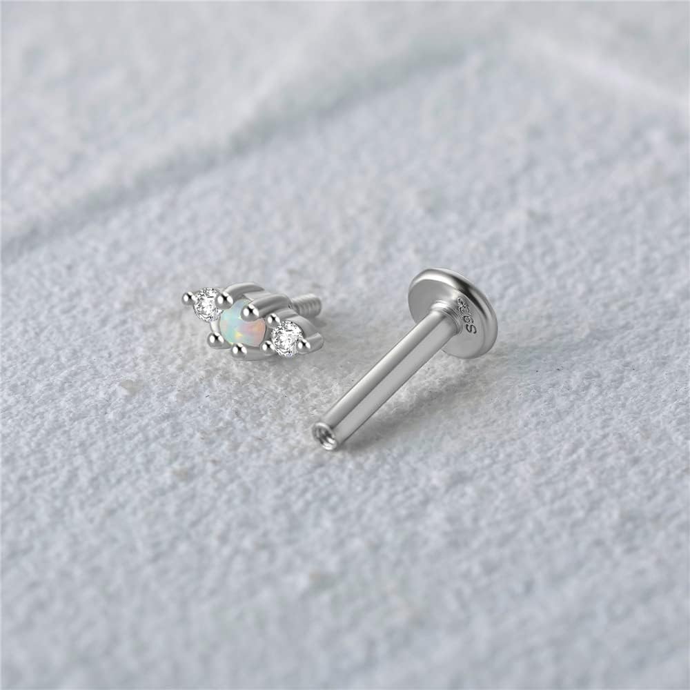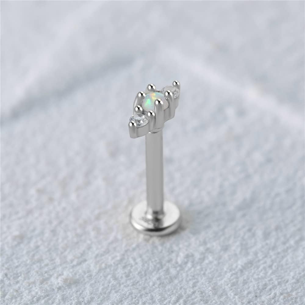 Solid 925 Sterling Silver Flat Back Stud Earrings, opal beads 16 Gauge Cartilage Helix Piercing One Piece