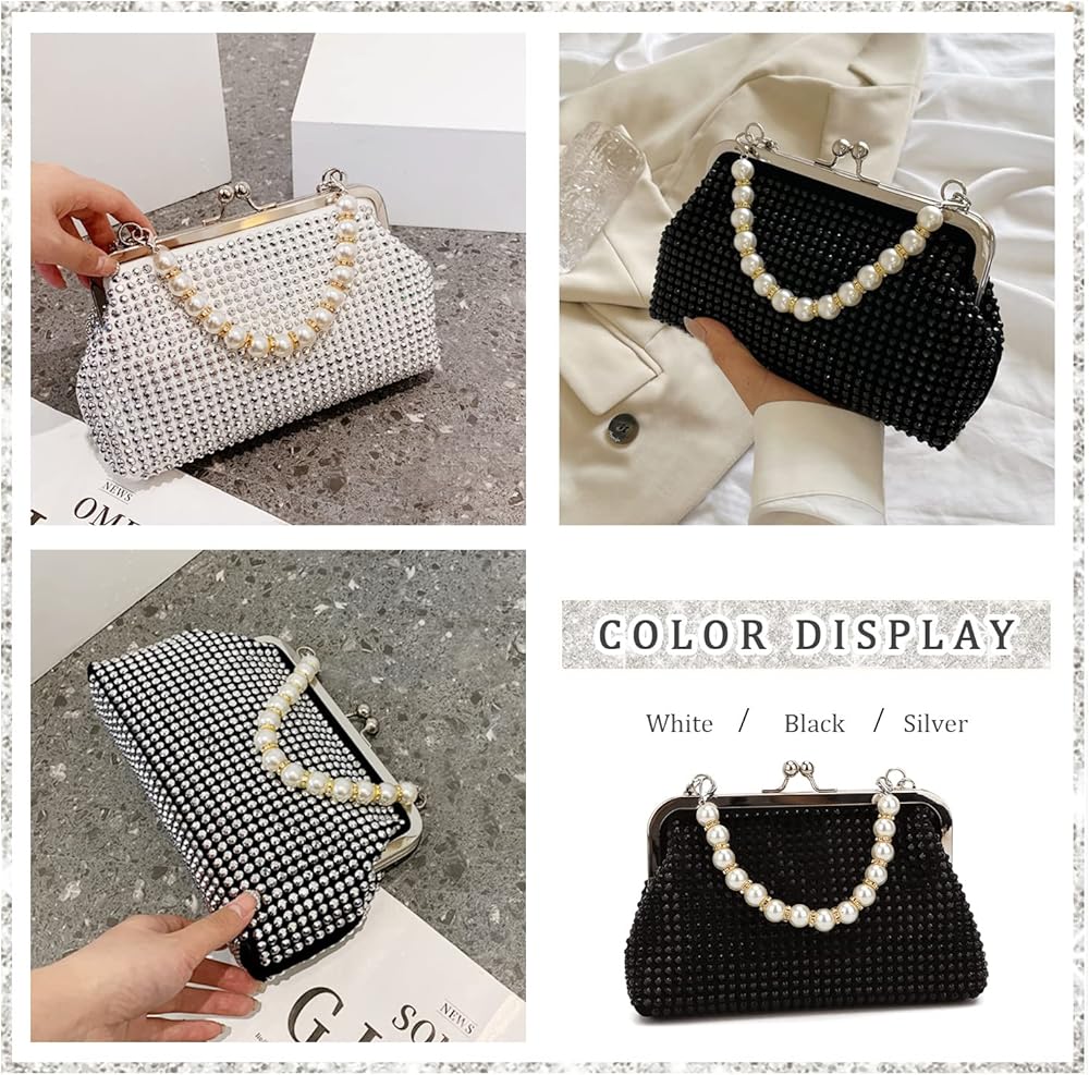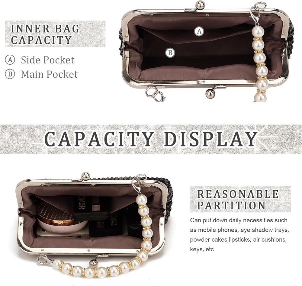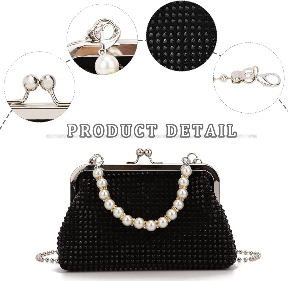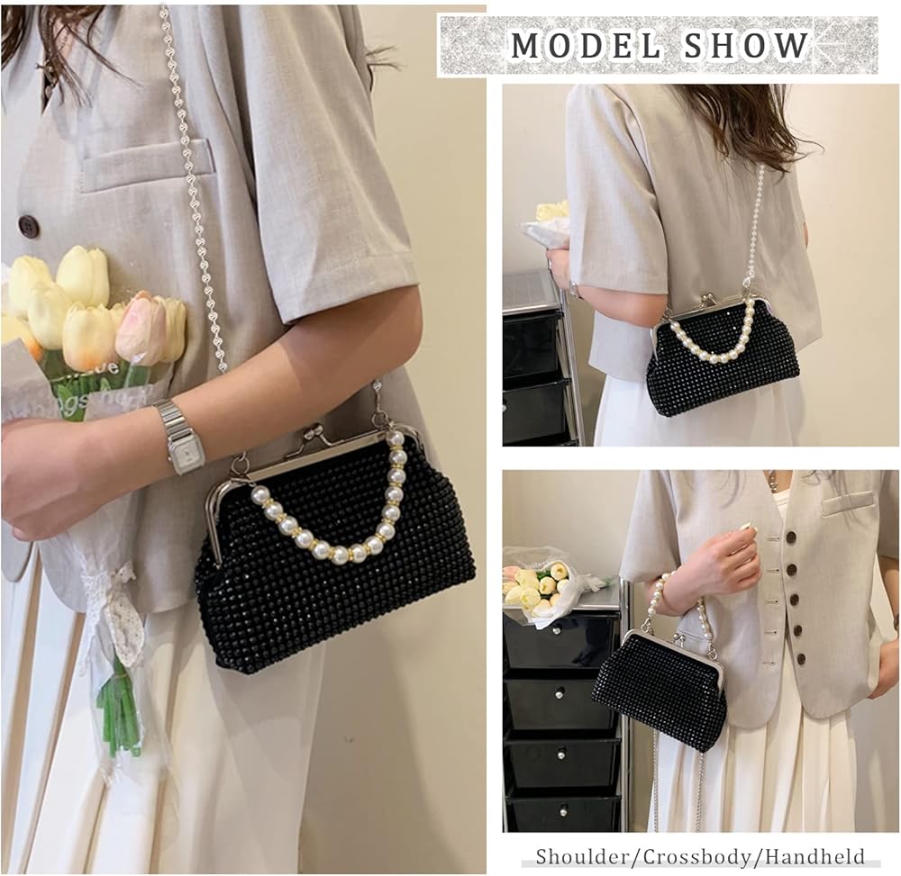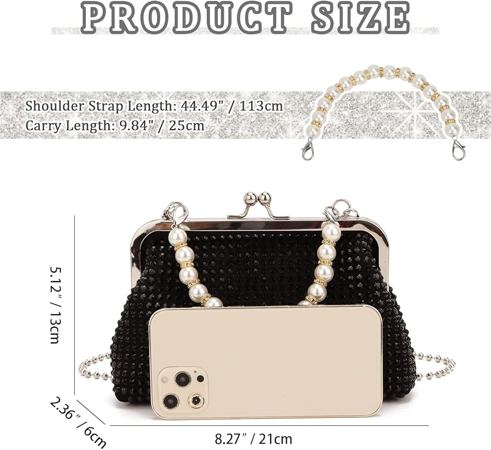 ღ[Design]: Full rhinestone decorated, pearl strap, adding more bling sense, you can choose the bag wearing way you like, and you will receive many compliments when taking it out