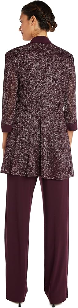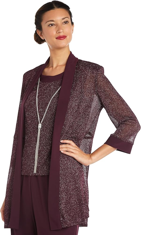 The cardigan matches the shimmering fabric of the top, with satin-finish hems.