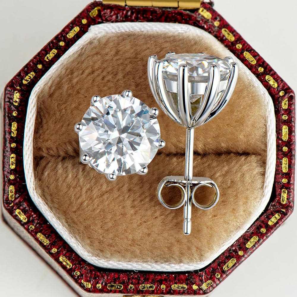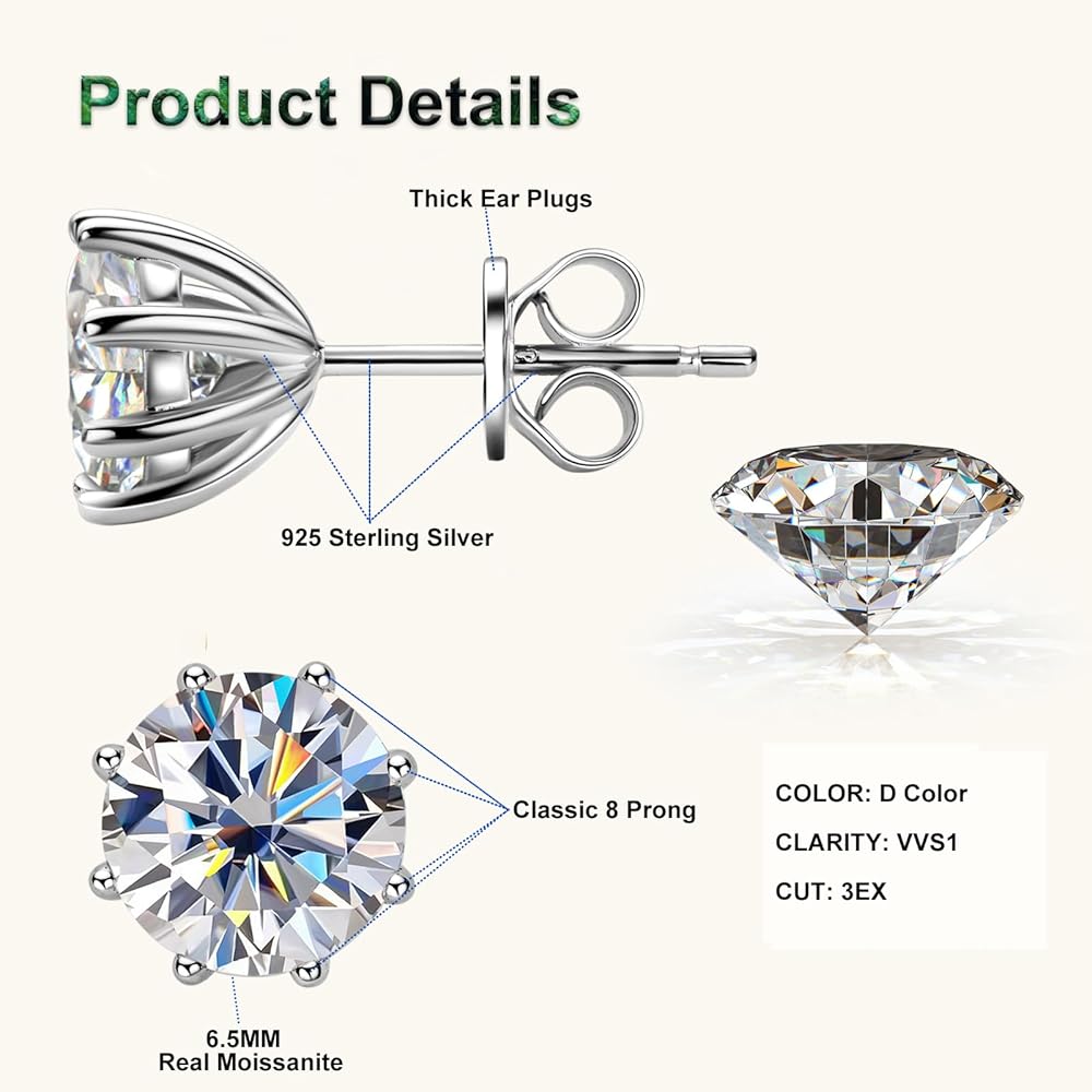 💎UPGRADED CUT CRAFT: Moissanite is second only to diamond in hardness (9.25 Mohs<10 Mohs) and is very suitable for daily wear. This moissanite hypoallergenic earrings studs are adopted upgraded plum blossom and excellent polished craft, more sparkling and clean. And our moissanite has passed the GRA moissanite certificate, which is traceable and with a unique code.