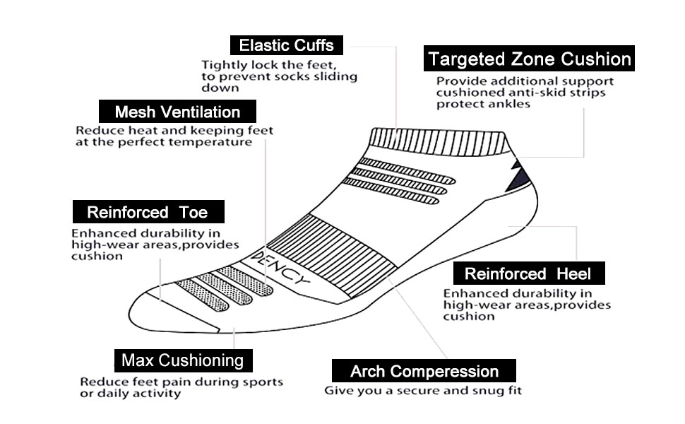 Cleverly Engineered: Targeted zone cushion in high impact area will provide additional support and comfort, also help you workout with ease, reduce fatigue, prevent blisters and chafing. Cushion in the whole bottom with thicker yarn that reduce the impact and friction form your movement.