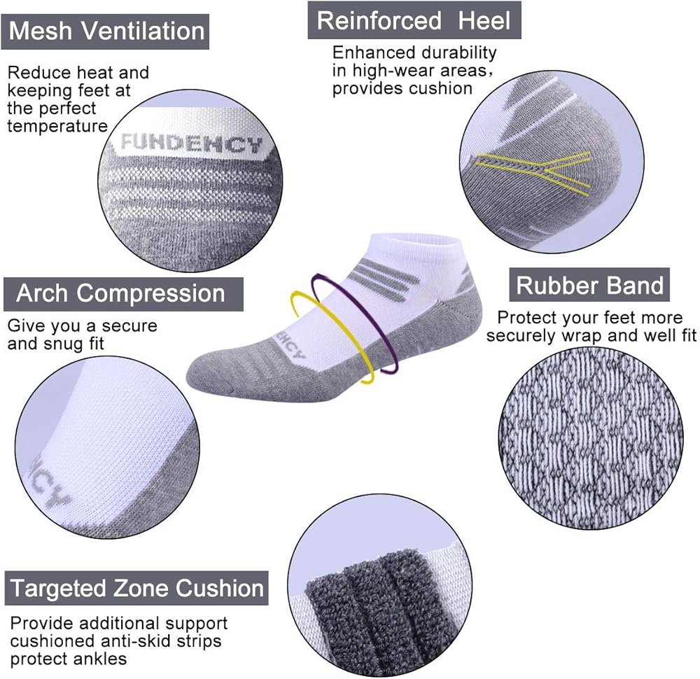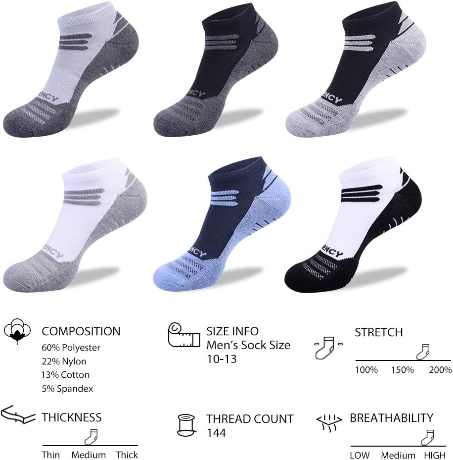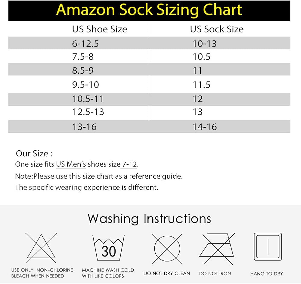 Great Match for Any Sport: Men's outdoor sport socks are perfect for any sport activity such as Running, Biking, Tennis, Golf, Fitness, Gym, Triathlon, etc. Great Low Cut Athletic Socks for more variety of outdoor activities such as Hiking, Camping, Mountaineering, Backpacking, Trekking and so on. Sock size 10-13/ Shoe size 7-12. 6 pairs per pack.