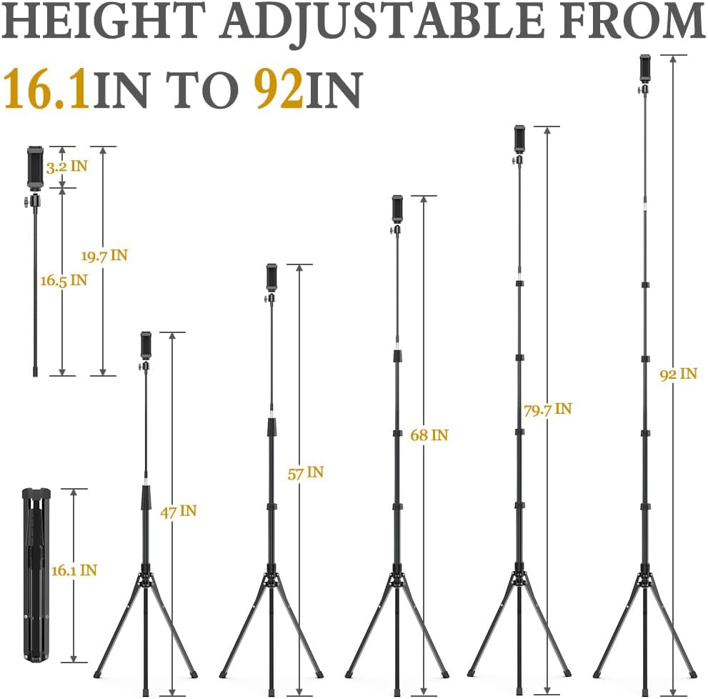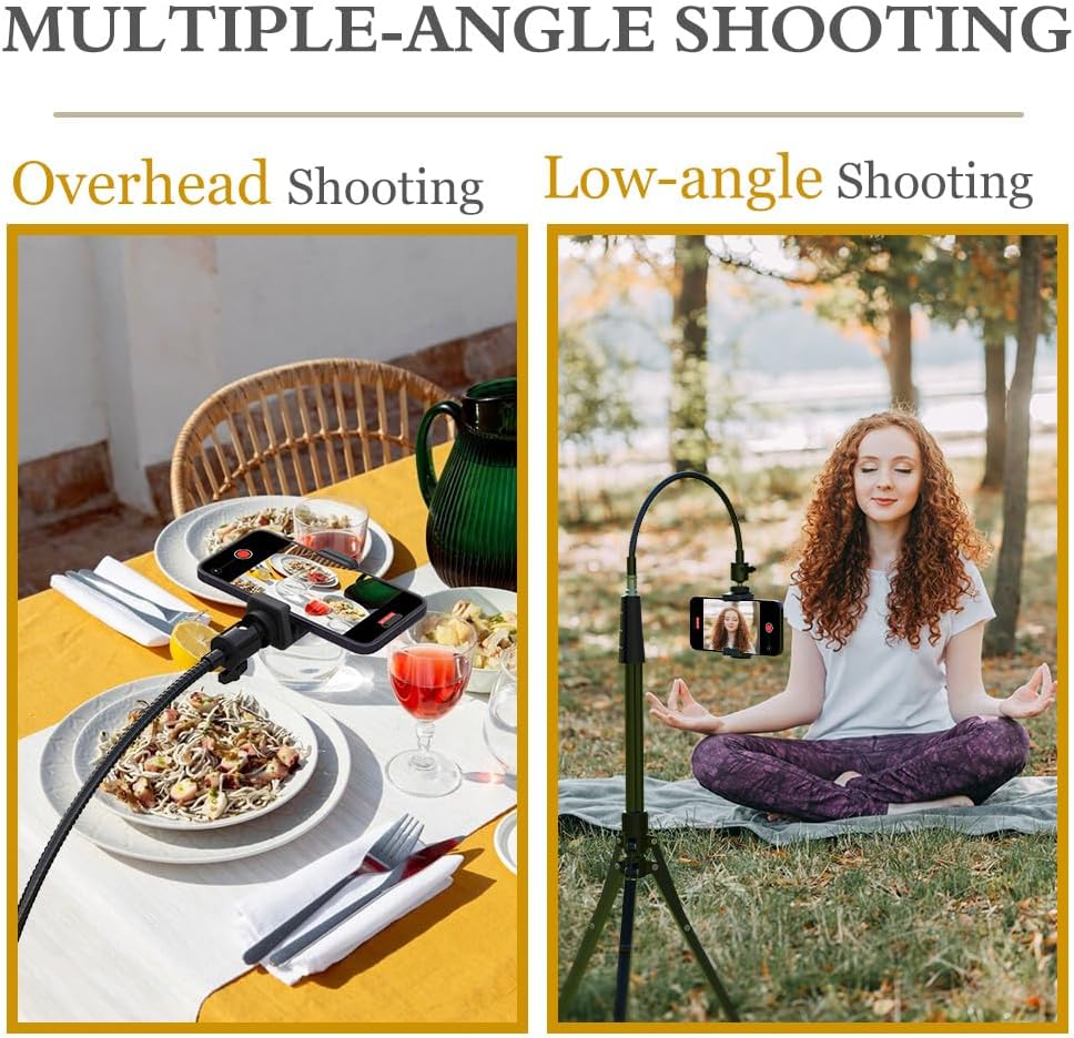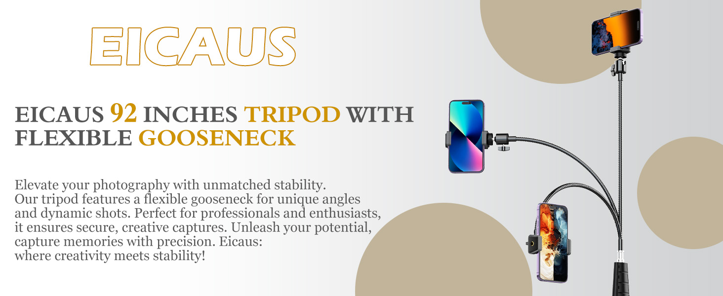 Eicaus 92’’ Tall Cell Phone Tripod Stand with 16.5’’ Flexible Gooseneck and Remote, Overhead Tripod with Adjustable 360°Ball Head & Phone Holder for iPhone 15 Pro Max/Plus/14/13/12/11, Android