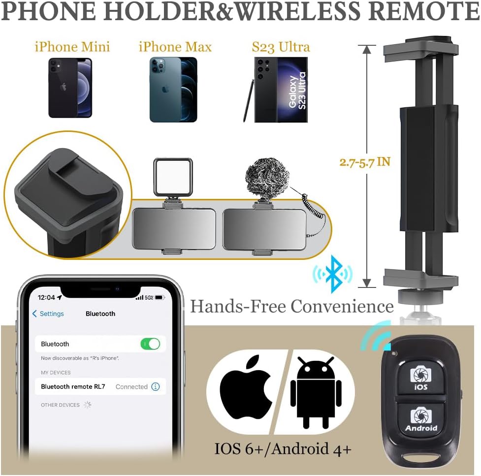 Eicaus 72'' Phone Tripod, Tripod for iPhone & Selfie Stick Tripod with Phone Mount and Remote - Upgraded, Stable, and Portable Tripod for iPhone 15/14/13, Android, Cameras and Action Cameras