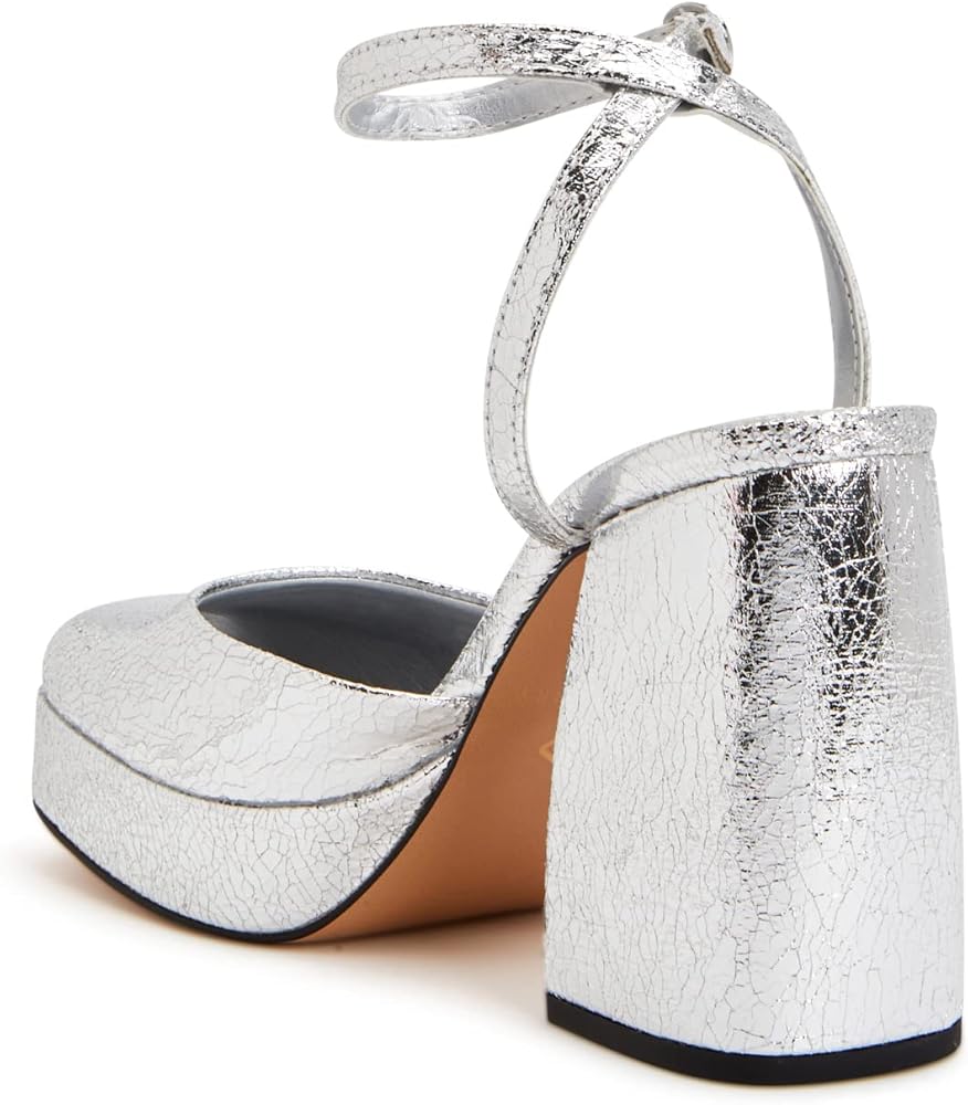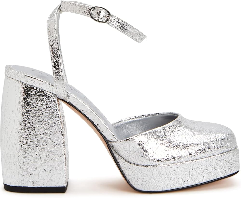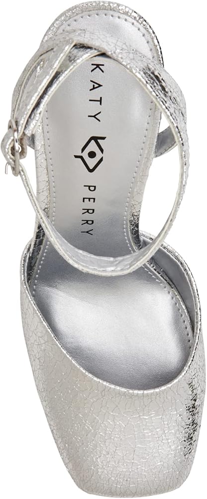 The Katy Perry Uplift ankle strap set on a chunky platform lends retro-inspired appeal to a scene-stealing pump framed by a square toe and black heel.