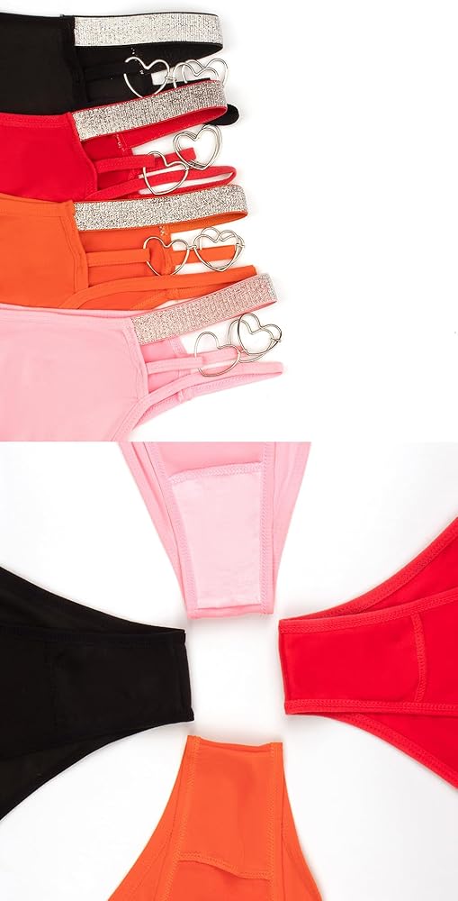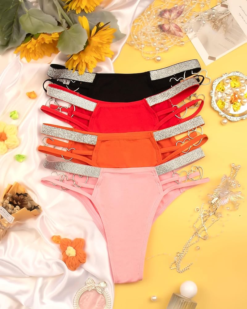 Glitter Thongs: No panty lines, seamless. 3 straps on the side provide a shiny and charming look with an exquisite love decoration. The lightweight fabric ensures good air permeability.