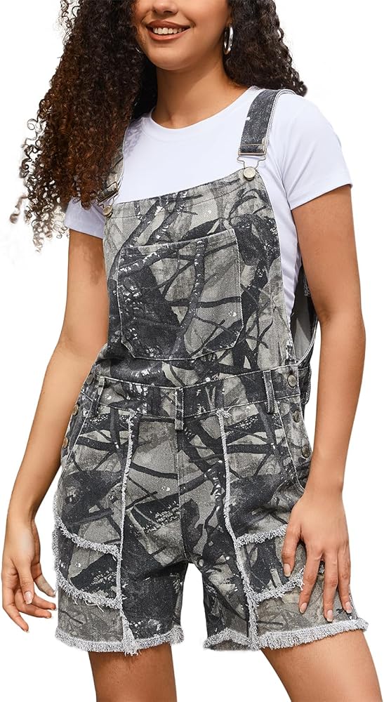 KGYA Women's Camo Overalls Shorts, Summer Short Bib Denim Rompers Casual Lounge Cute Shortalls with Adjustable Buckle Straps for Women
