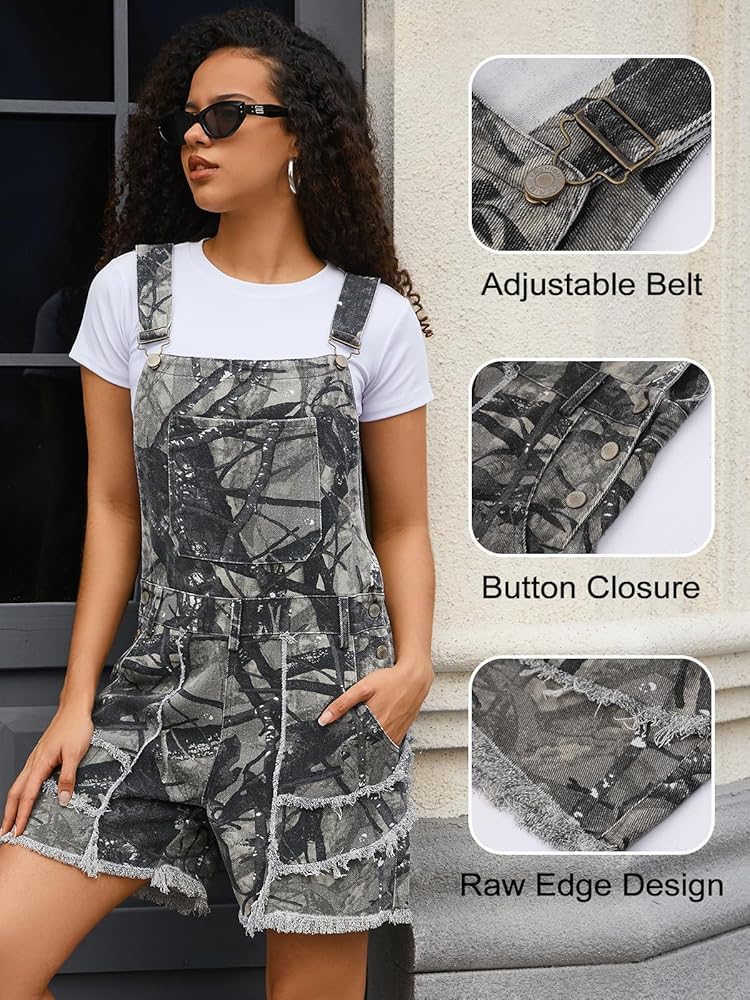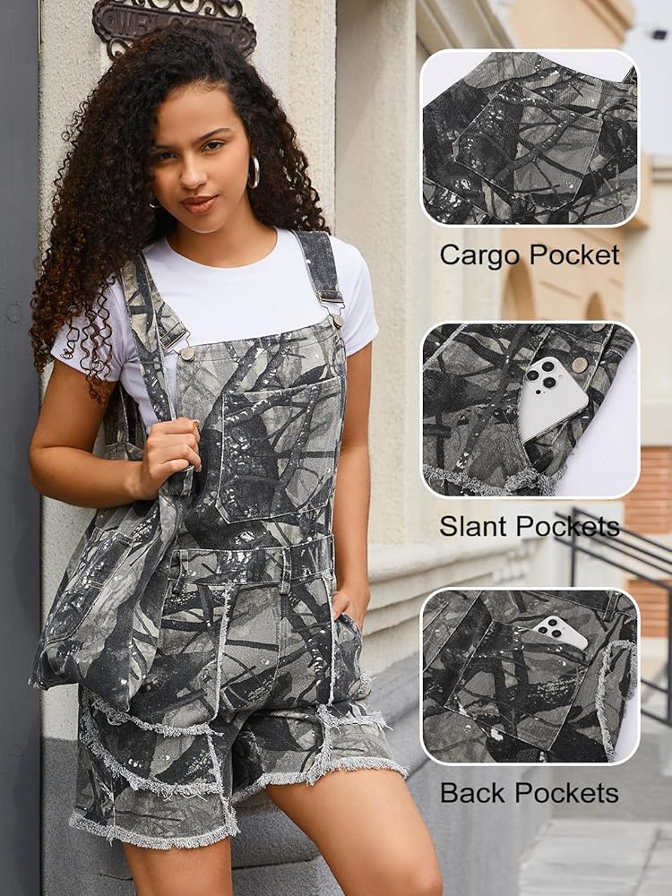 Relaxed Fit: Taking a cue from our Unisex Camo Pants Series, we recreated a classic overall shorts for cool ladies in summer. Constructed with a adjustable buckle straps and loose fit, these overalls deliver casual comfort and classic denim or cargo style to any short tops