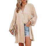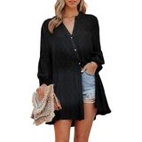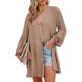 - This oversized button down dress can be used as a casual shirt or cover-up dress.