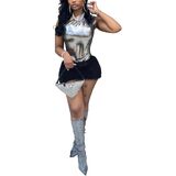 The great gift: Impress your wife, girlfriend, mother or sister with our stylish sexy shiny elastic romper and hot sexy mini skirt, make she look more beautiful, and fashionable.
