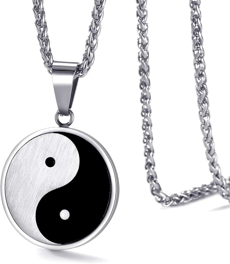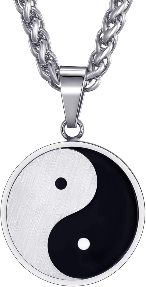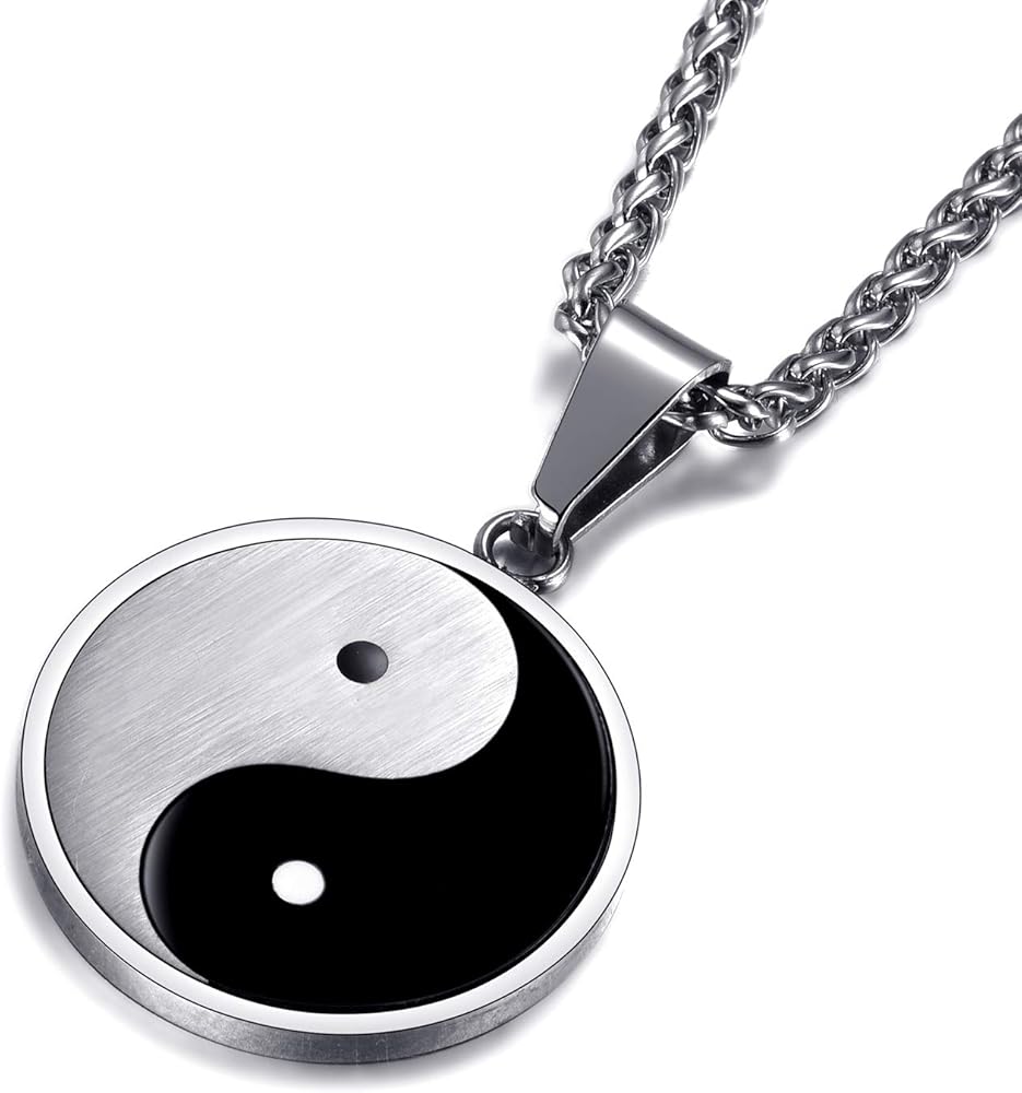 Stainless steel yin and yang pendant necklaces for men and boys. Yin Yang necklace is a good reminder of balaced life and it is also a great amulet pendant chain for men