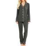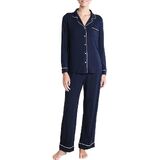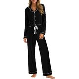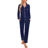 SWOMOG Womens Pajama Sets Long Sleeve Button Down Sleepwear Soft Pjs Lounge Sets with Pockets Navy Blue Wide Piping