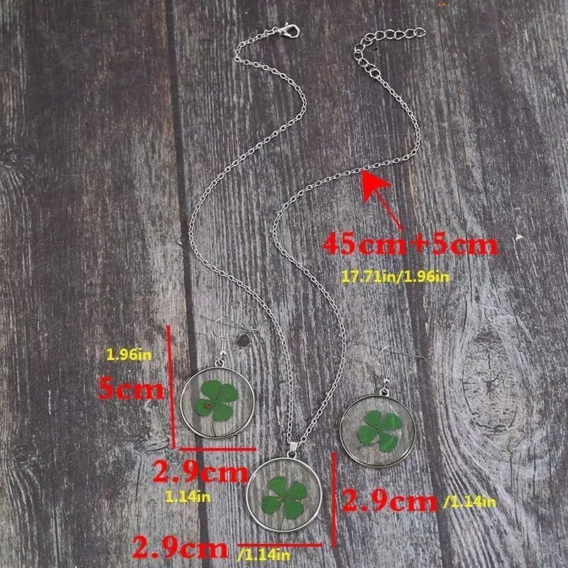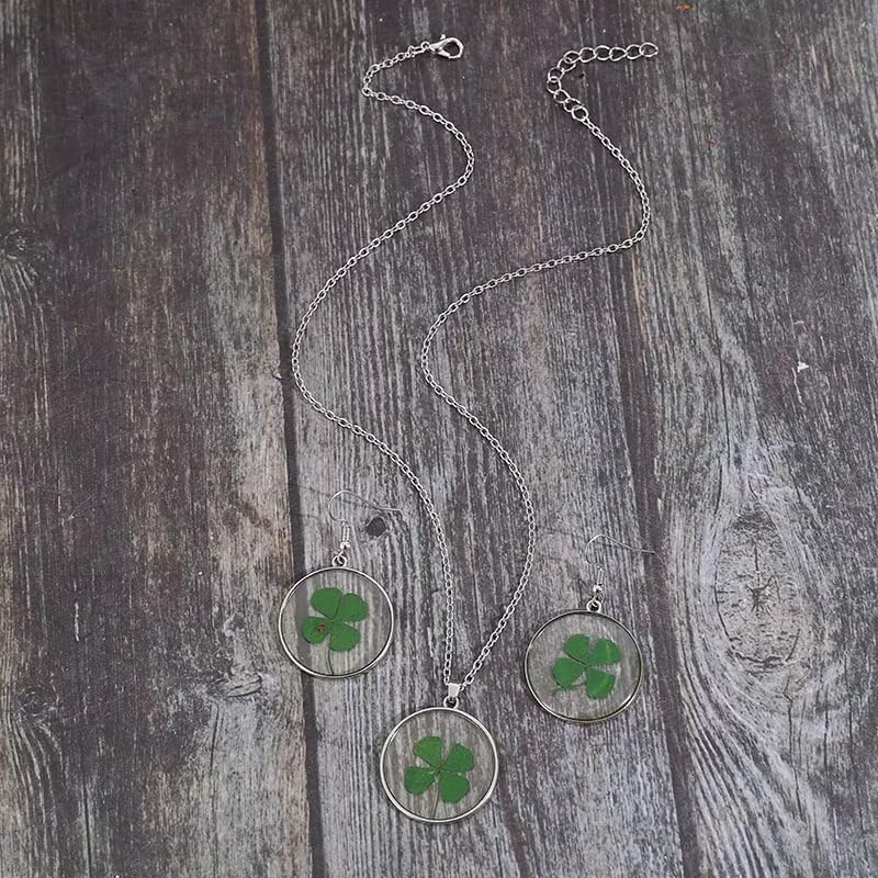 St. Patrick's Day Earring Necklace Clear Round Green Four-Leaf Clover Vintage Silver Necklace Earring Set Holiday Jewelry Gifts For Women Girl, Dainty Necklace, Star Necklace, Silver Necklace, St. Patrick's Day Birthday New Year Jewelry Accessories.