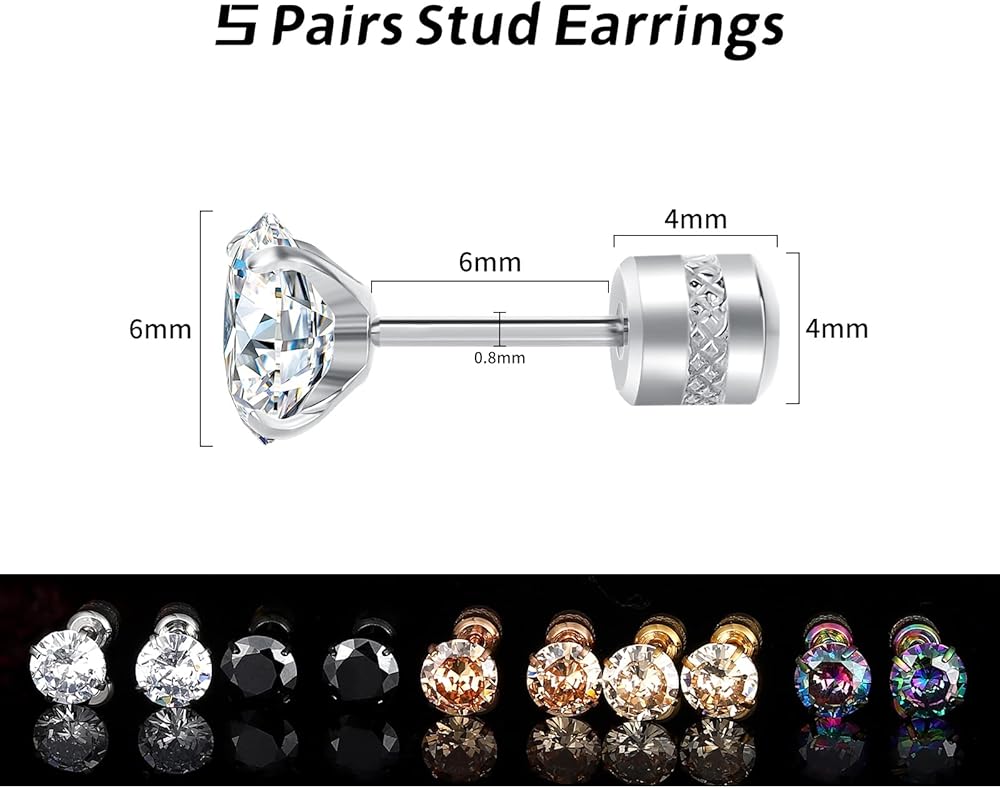 مسمار CZ بمقاسات متعددة - 2/3/4/5/6 مم، أقراط خلفية لولبية للنساء والرجال، قد تلبي احتياجاتك القصوى. يمكنك اختيار المقاس المناسب لك، أو ارتدائه بمفرده أو تكديسه حسب رغبتك.