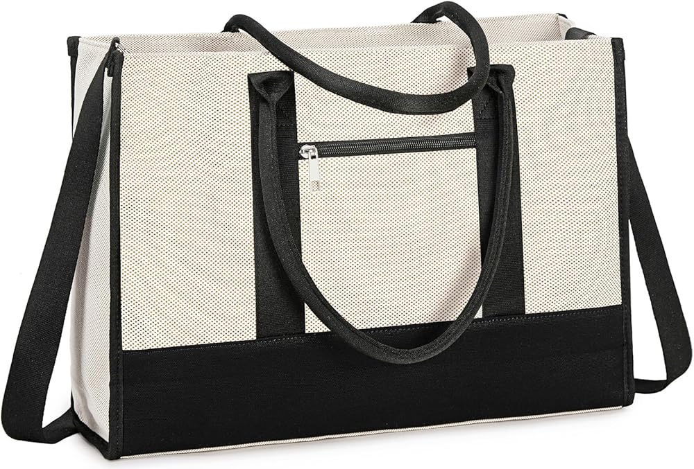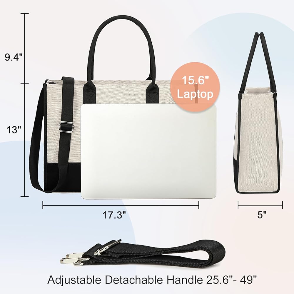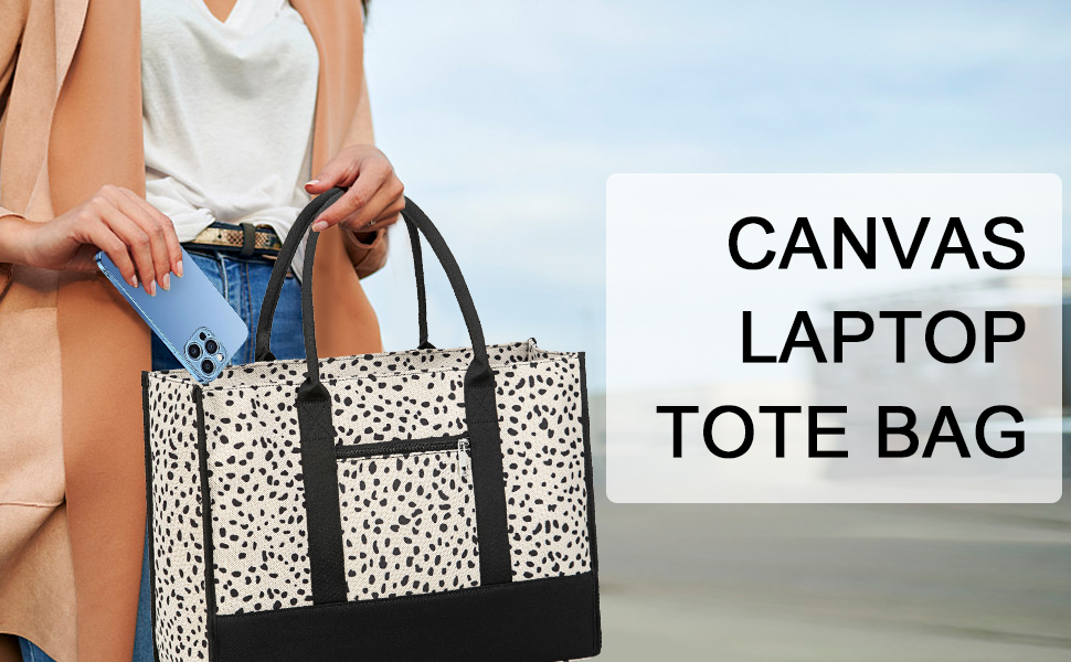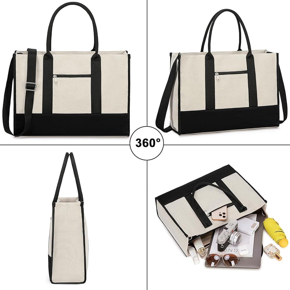 Large Capacity Laptop Bag:The dimension of the tote bag:17 x 12.5 x 5 in (L*H*W). The work tote bags for women is available for keeping all your stuff organized. It is made of premium canvas with sturdy hardware. The durability of the teacher tote bag is fantastic with a strong structure,can sit upright on its own.