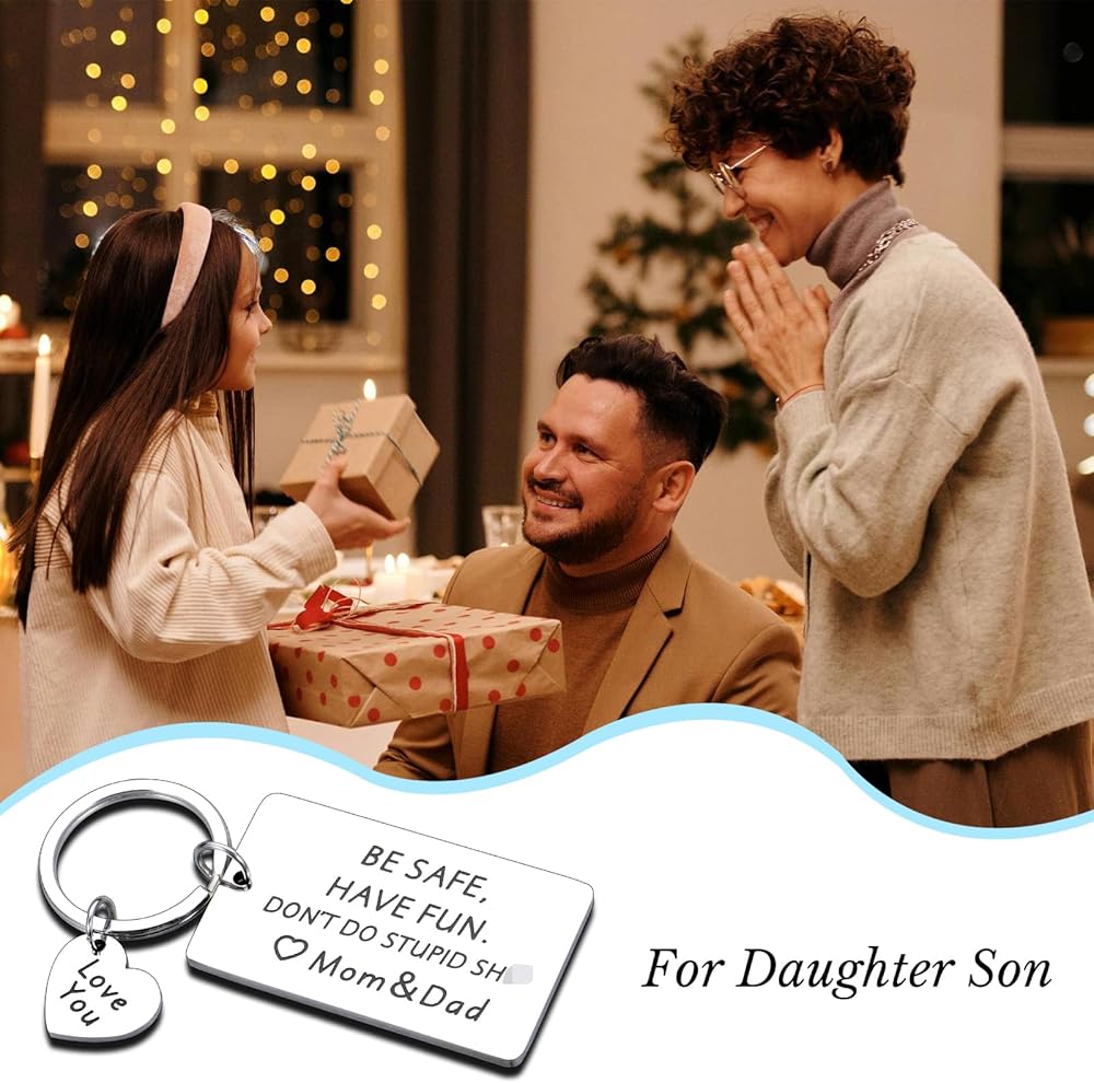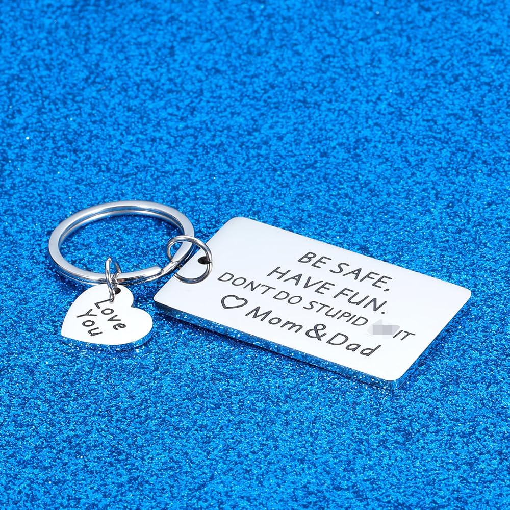Engraved with funny words, 'be safe, have fun, don't do stupid sht', as a exquisite gift, this meaningful keychain is a good way to show your love and your feeling to your daughter, stepdaughter, goddaughter, daughter in law, son, stepson, grandson, godson, son in law and tell them have fun and don't do something stupid. You can make this funny keychain a little reminder for your girls and boys.