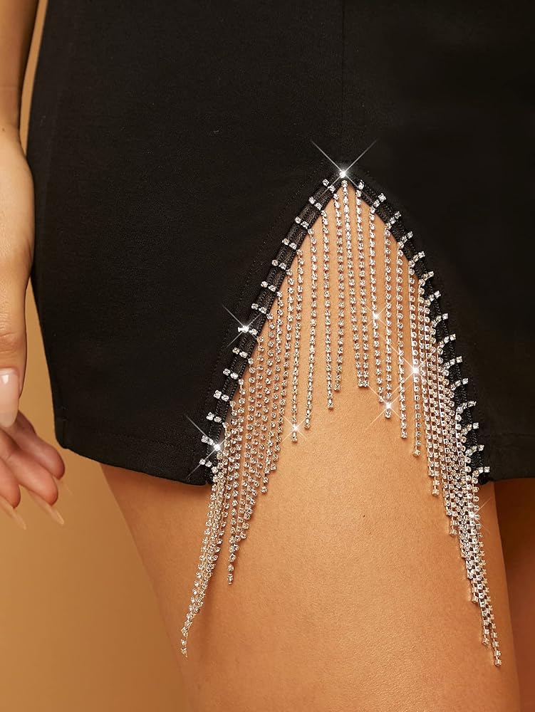 • Sexy bodycon mini skirt featuring with rhinestone fringe trim and high waist design makes you become shining one in the crowd