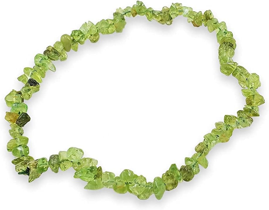 This Listing is For One (1) Peridot Gemstone Chips Bracelet - 7.50 Inch + Pouch