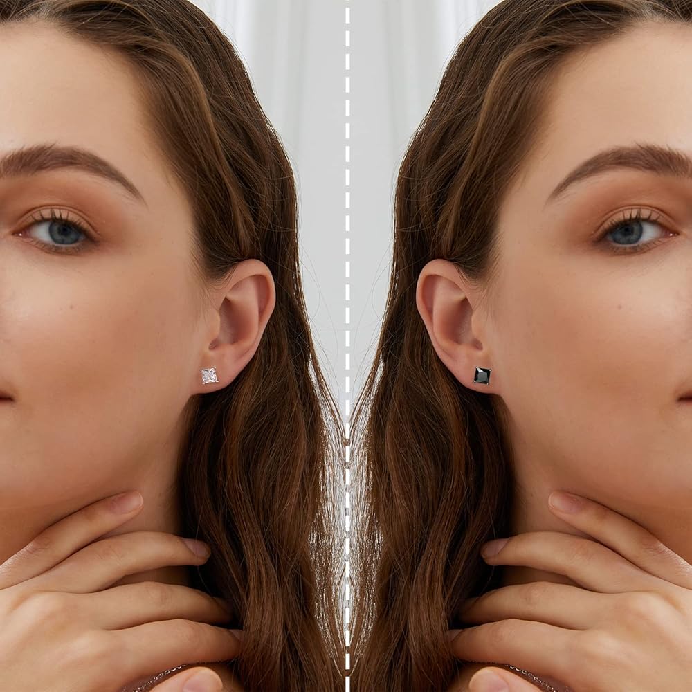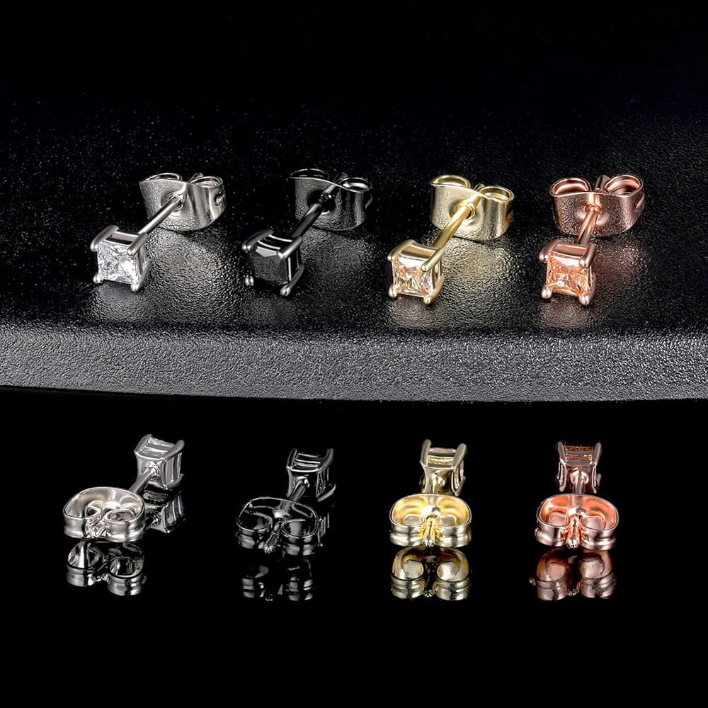 - Pack of rainbow earrings -- 6mm Square Clear, Black, Yellow, Champagne CZ