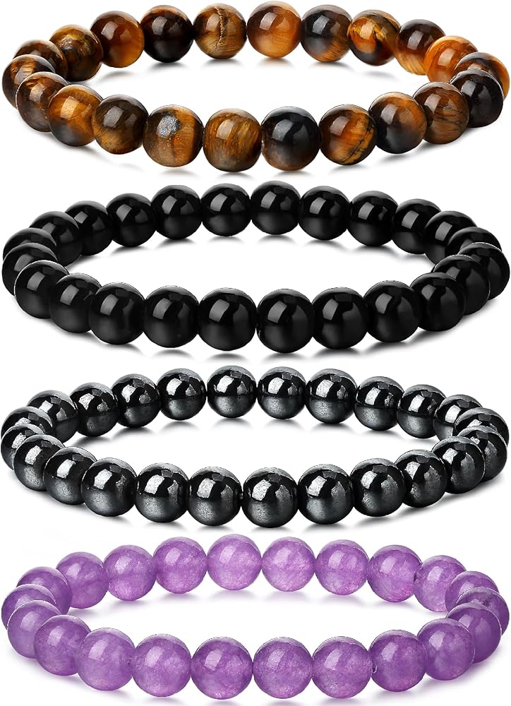 4 PCS 8mm Healing Crystal Bracelet for Women Men Natural Beaded Gorgeous Semi-Precious Gemstone Stone Beads Stretch Bracelets Jewelry Unisex