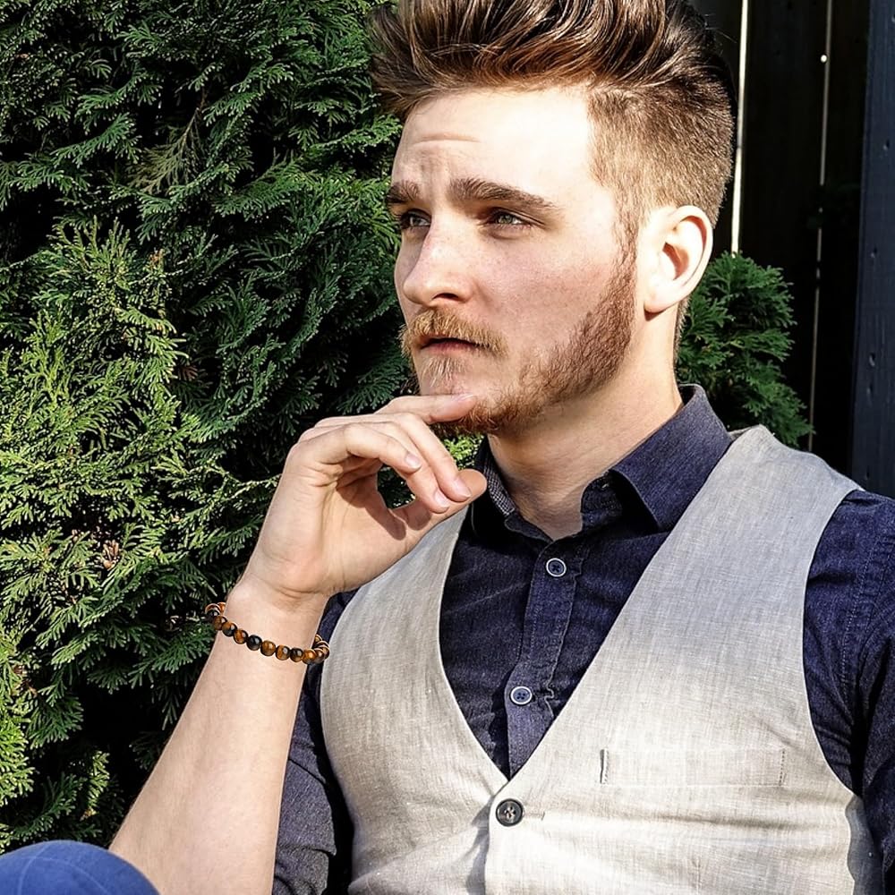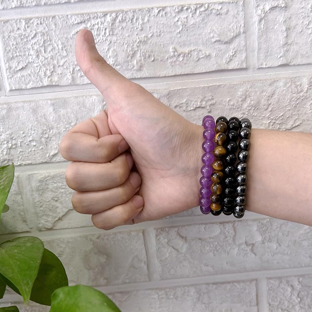 BRACELETS SIZE - 7.5in (19cm) length, stone beads 8mm, simple and comfortable design, classic, neat, easy to wear, using stronger Elastic wire. Each bracelet is unique and may vary in color and size.