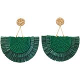 【Fashion Look】Beaded statement earrings in gorgeous colors features beaded dangling tassel with symmetrical pattern to create a statement pieces.