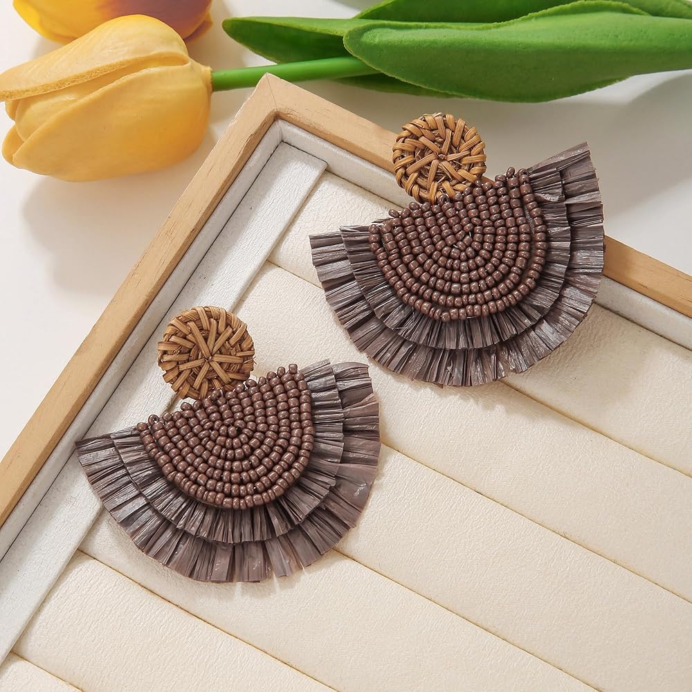 【Various Occassions】These Boho beaded earrings are just what your wardrobe needs, a chic but fun design that's perfect for putting the finishing touch to your evening ensembles - for a party-ready look at your next event wear with strappy block heel sandals and a colourful midi dress.