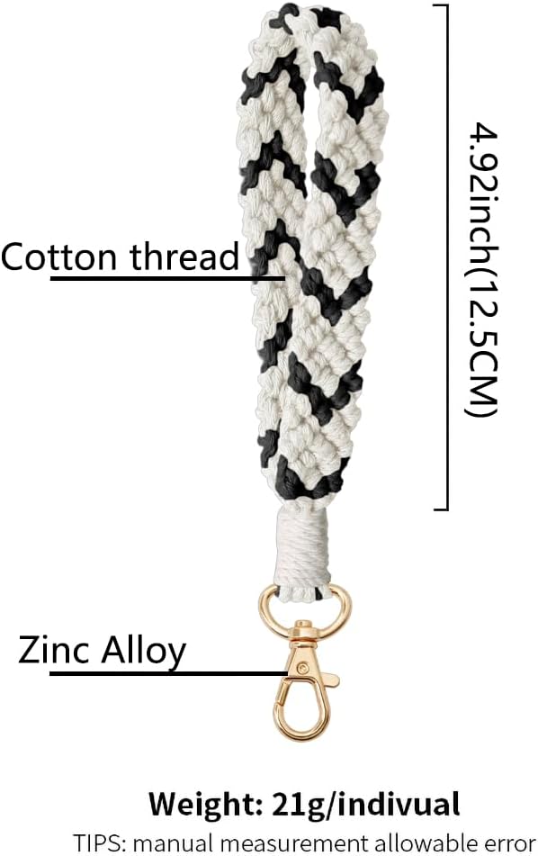 These keychains made from high quality natural cotton cord and gold tone copper snap hooks. Material is so soft and lightweight. Perfect for purses, keyrings, backpacks, coin wallet, phone case, or car's rear view mirror.Add bohemian style and simple texture to your personal items become more attractive.