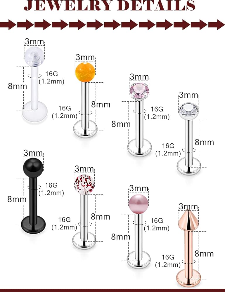 💕MULTIFUNCTIONAL💕 They Can Be Used as Lip Ring, Cartilage Earring, Helix Piercing, Labret Studs, Tragus Barbell Jewelry. Incellent External Screw Thread, Firmly Screw on and Flexibly Screw off .
