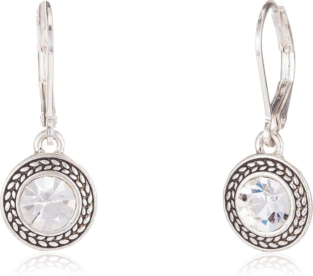 Crystal Drop Earrings: Add elegance to your outfit with these brilliant silver tone earrings with drops feature sparkling crystal glass centerpieces in textured bezels, with Leverback closures