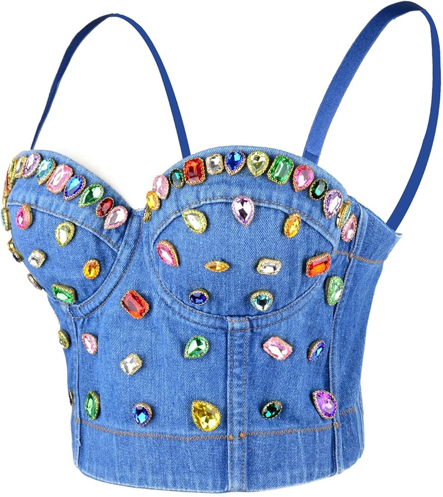 You'll be dressed to impress in this trendy denim bustier crop top! These destructed denim bustier bra features a sweetheart neckline, adjustable and detachable shoulder straps, a row of hidden hook back closures, and a padded bust. The corset top is composed of a denim fabric detailed with light destruction.