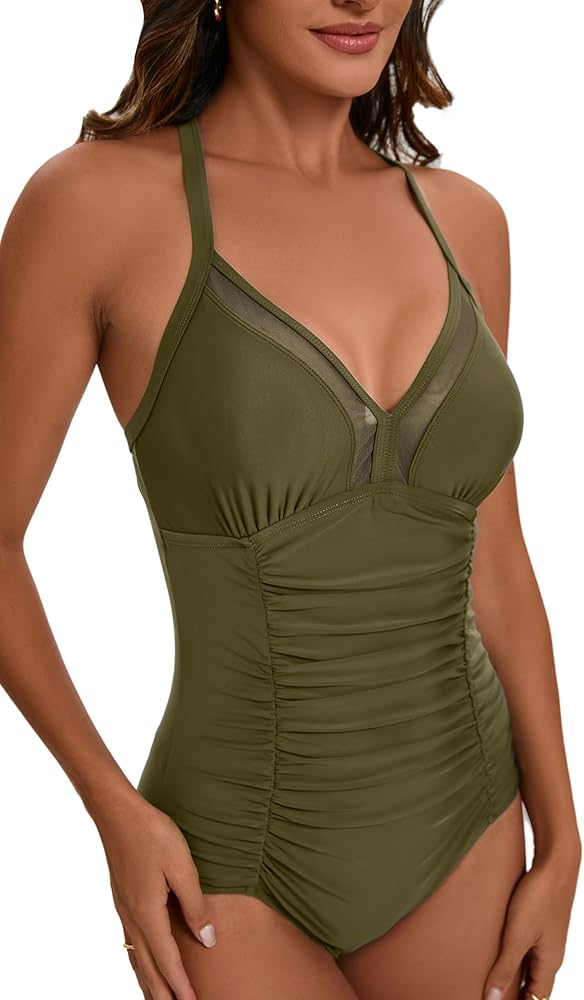Mysterious see-through effect: This one piece bathing for women features a unique V neck design with front mesh creates a see-through effect, adding a touch of mystery that makes you stand out at the pool or beach.