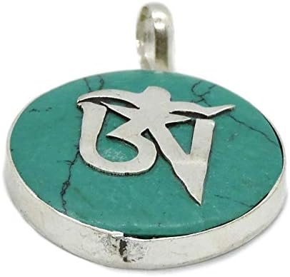 This listing is for a hand crafted crushed turquoise and coral pendant with an OM symbol and beautiful scrolling detail. This pendant measures approximately 1 inch and was handmade in Kathmandu Nepal. In Tibetan Buddhism, "OM" is the supreme and most sacred syllable, consisting in Sanskrit of three sounds (A, U, M) representing body, speech, mind and other various fundamental triads.