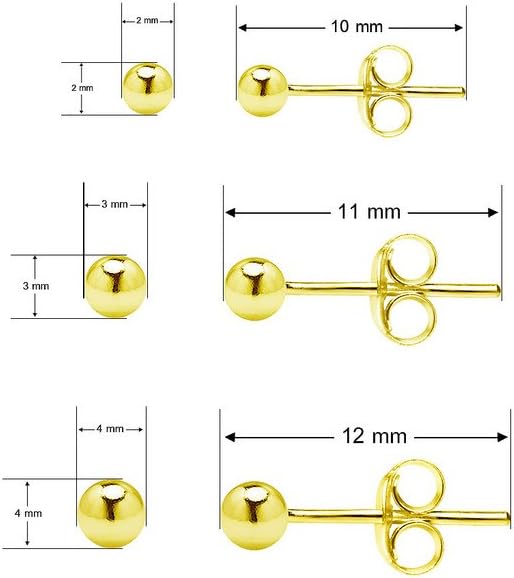 Your new set includes four pairs of ball stud earrings, all made from genuine .925 sterling silver. You'll receive three pairs of 2mm, 3mm and 4mm of ball bead studs and the studs secure with post and friction backs.