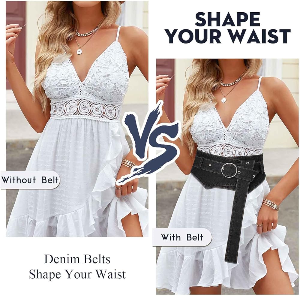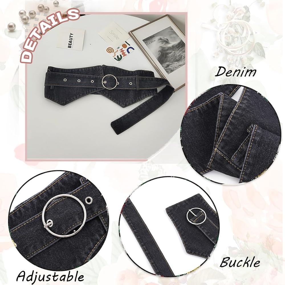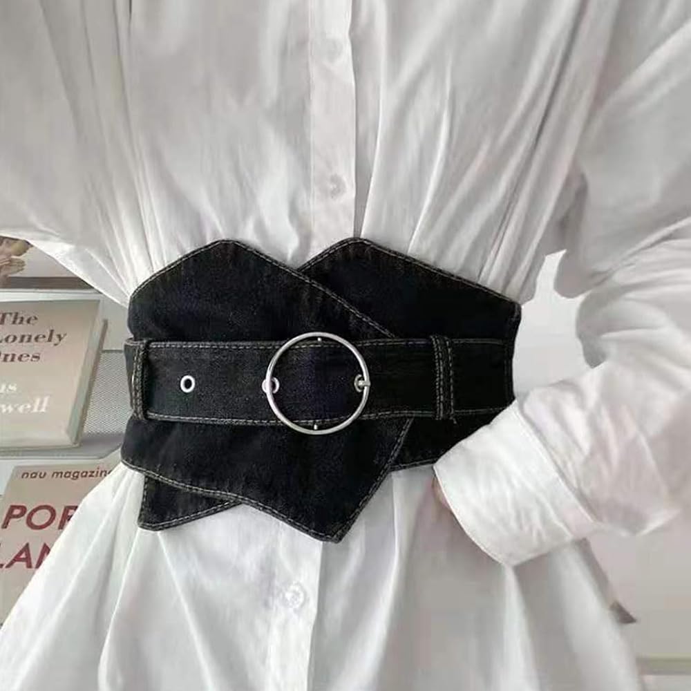 Urieo Retro Denim Corset Belt Black Buckle Wrap Waist Cinch Belts Wide Vintage Dress Dresses Waspie Belt Waistband for Women