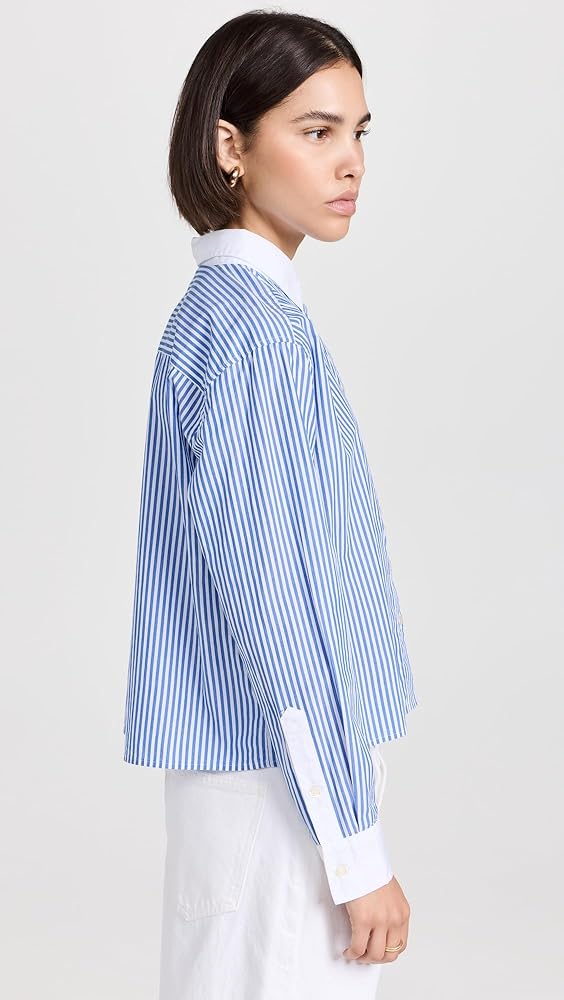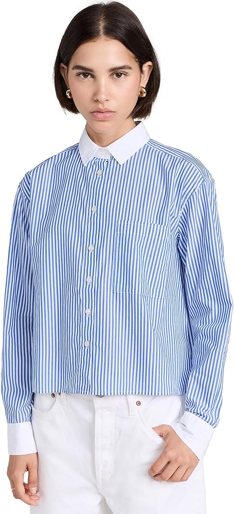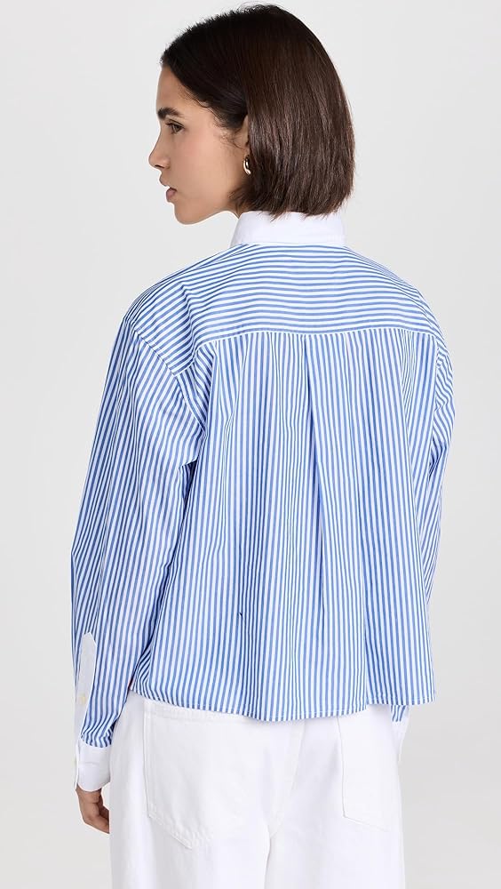 - Collared neckline and long sleeves with button cuffs, Striped pattern and patch breast pocket, Contrast trim