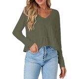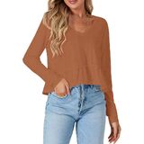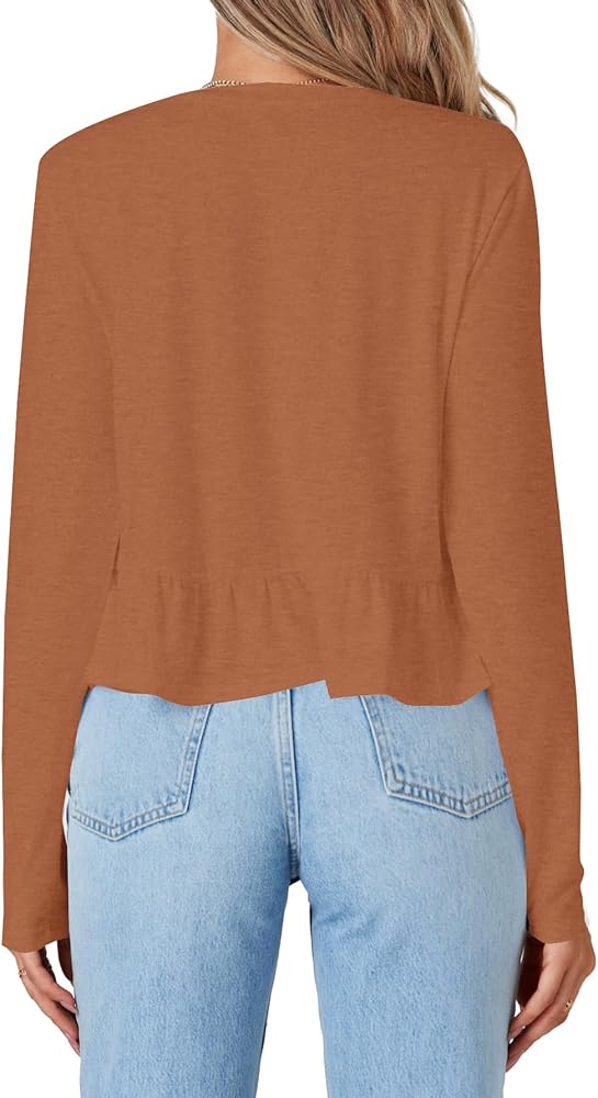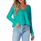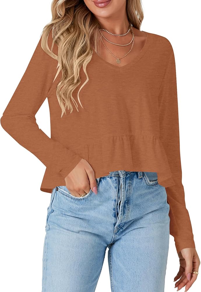 • V neck, long sleeve, ruffle hem, solid color, crop length, loose fit, skin-friendly and lightweight fabric, pull on babydoll blouse for women and girls.