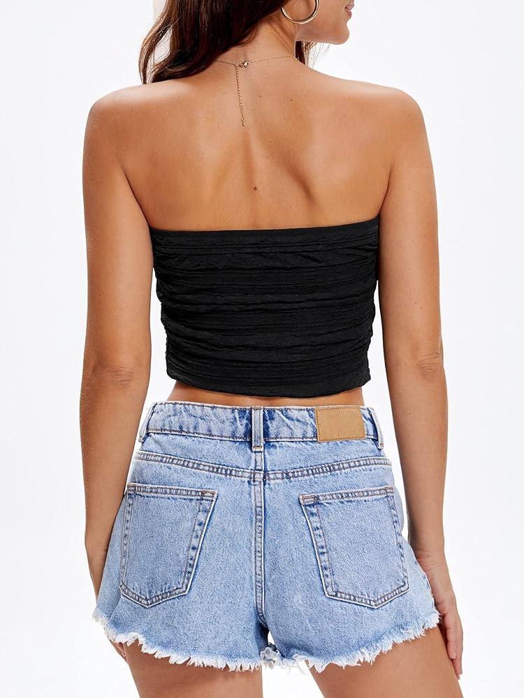 Our Women's tube tops feature a Strapless & Sleeveless design with unique pleated texture knit, elastic upper band, no pad, great comfort, not see-through and slim-fit design for a chic and stylish look.