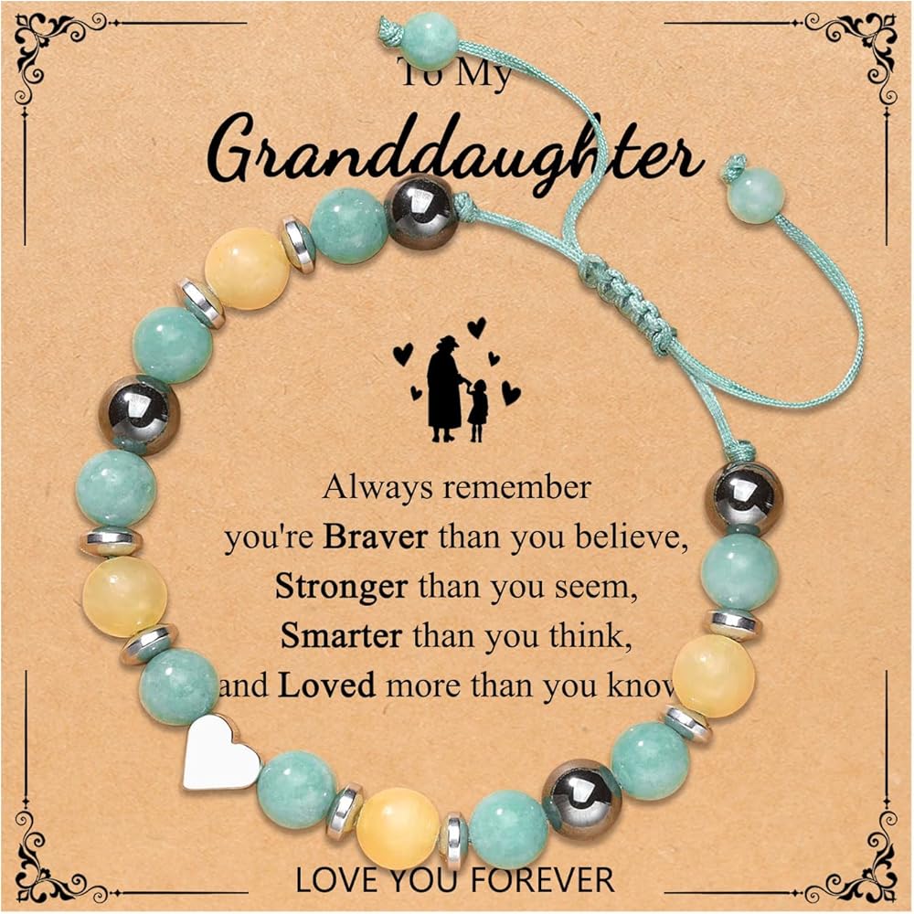 【Material】:This granddaughter bracelet is made of 8mm natural stone and high quality nylon rope. With stainless steel heart charm, highly polished, no rust. It will be a great Christmas or birthday gift for your granddaughter!