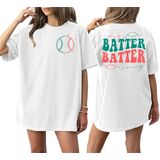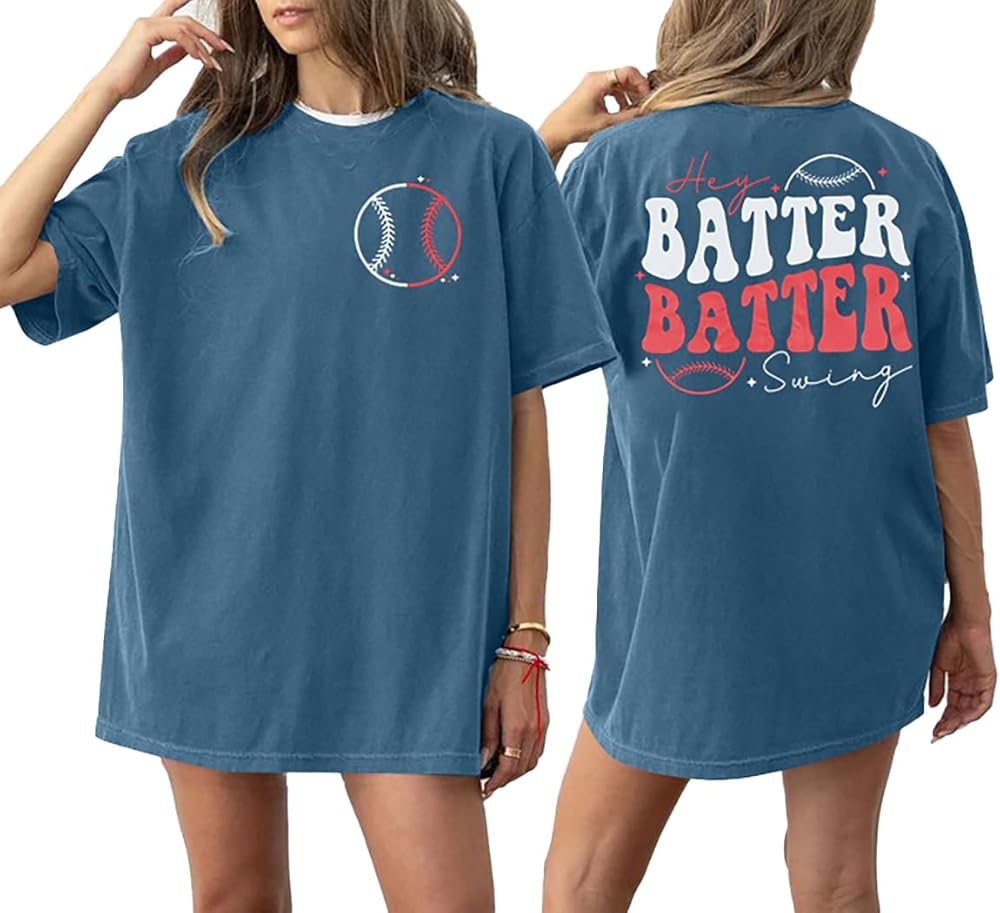 Features: Cute and lovely " hey batter batter swing" letter print, baseball graphic, short sleeve, crew neck, ladies softball shirts, women's game day t-shirt.