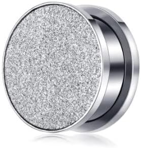 Brand New - Pair (2pcs) of Silver Glitter Front Stainless Steel Screw-On Ear Plugs - Ear Gauges. High Quality, Durable! 10 Sizes to Choose from!