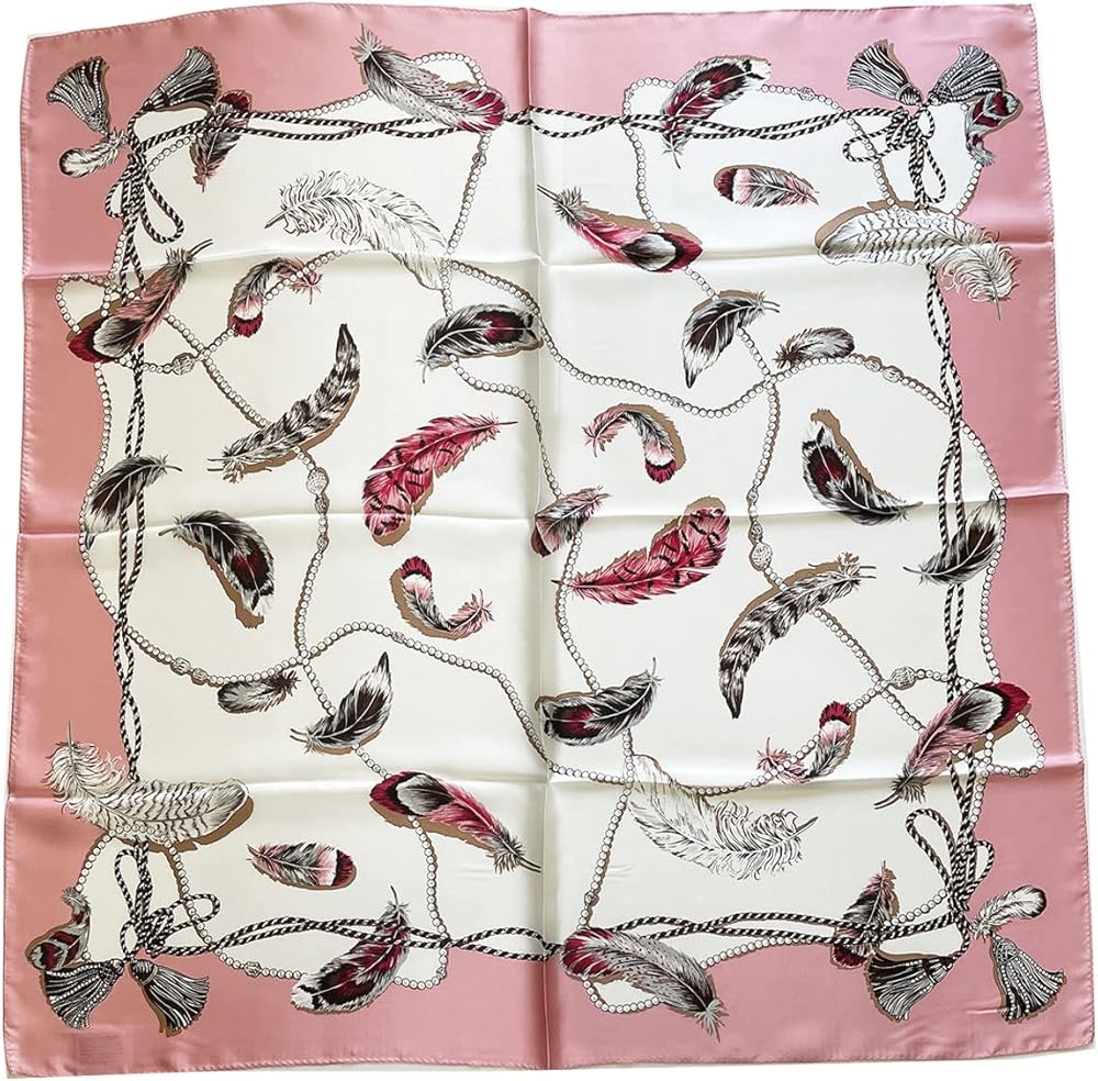 Fashionable screen printed silk scarf, Name: #9117 Feather, Gift Cased, Colour: Light green /Pink , Material:100%Silk twil fabric, Size:35x35in 88×88cm, Made in Japan, (conform to 16 CFR Part 1610)