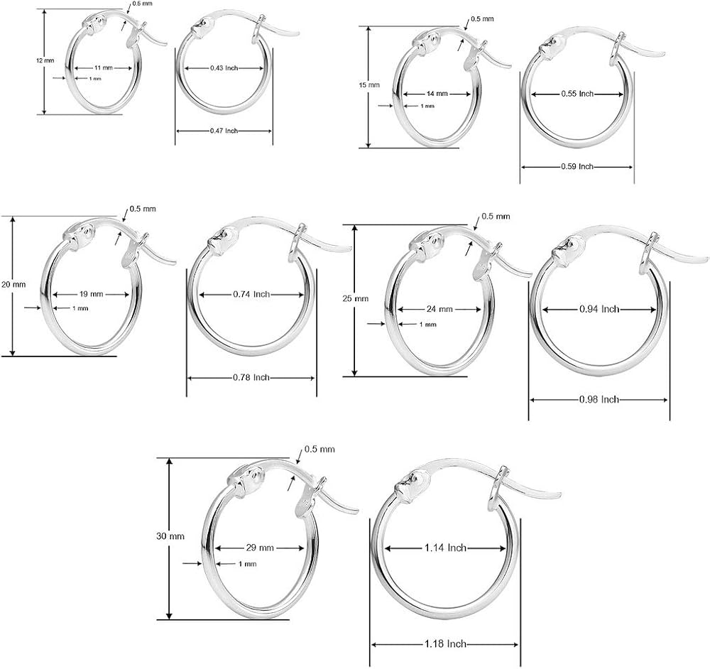• THIN, LIGHTWEIGHT, ALL DAY WEAR - These Click-Top Hoops are available in various sets in the sizes of 12mm 15mm 20mm 25mm 30mm diameter, thickness - 1mm. Thanks to its super light weight, they are perfect for all day wear. Craftily secured with click-top closures, our hoops have a high polish finish that adds a fine luster and sharp touch.