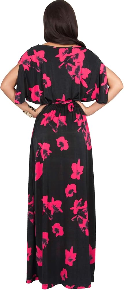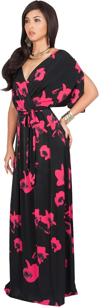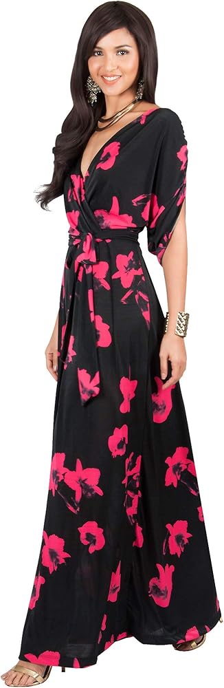 STYLE - A gorgeous yet elegant Red floral print maxi dress features a sexy wrap cross over design as a deep V-neck. The bow waist design ensuring a great fit and a slimming look for all body shapes and sizes
