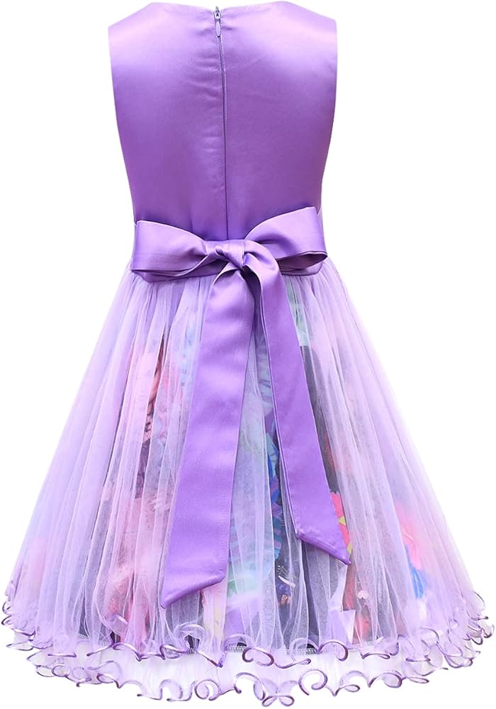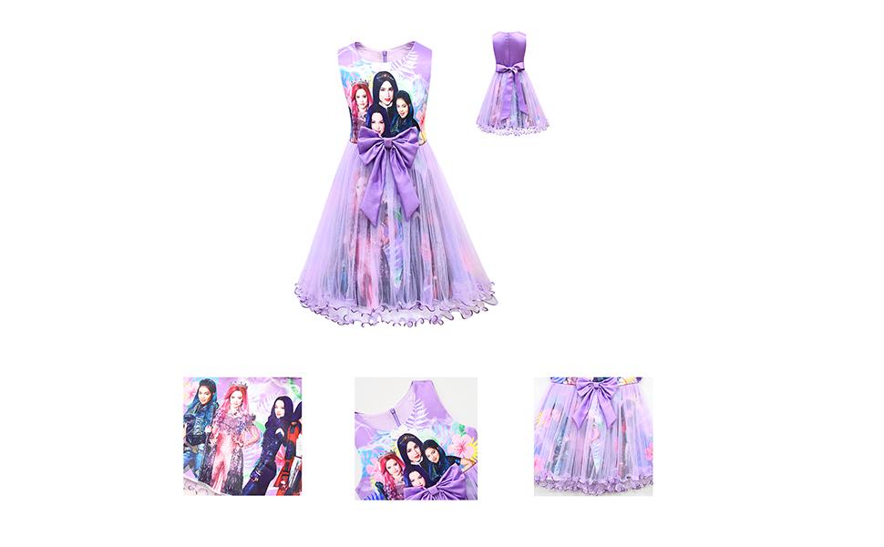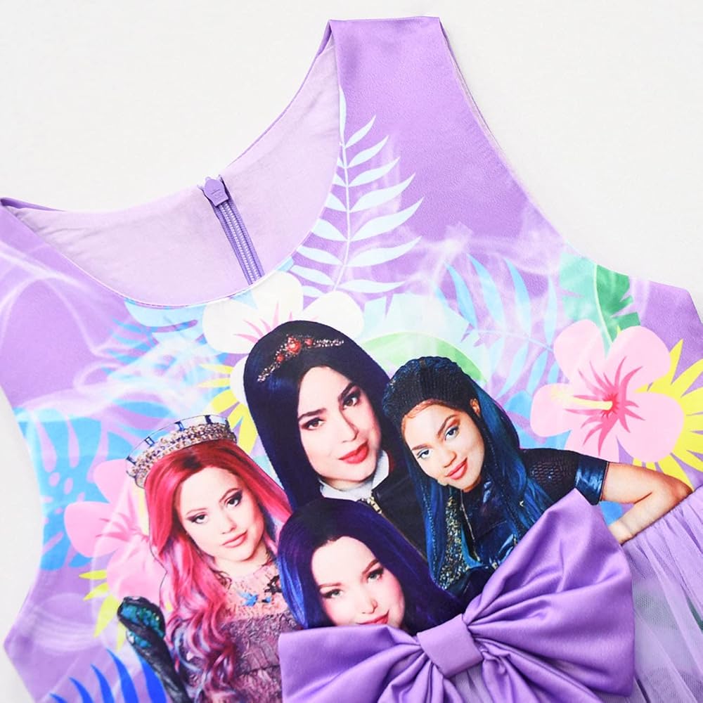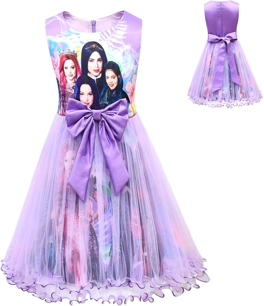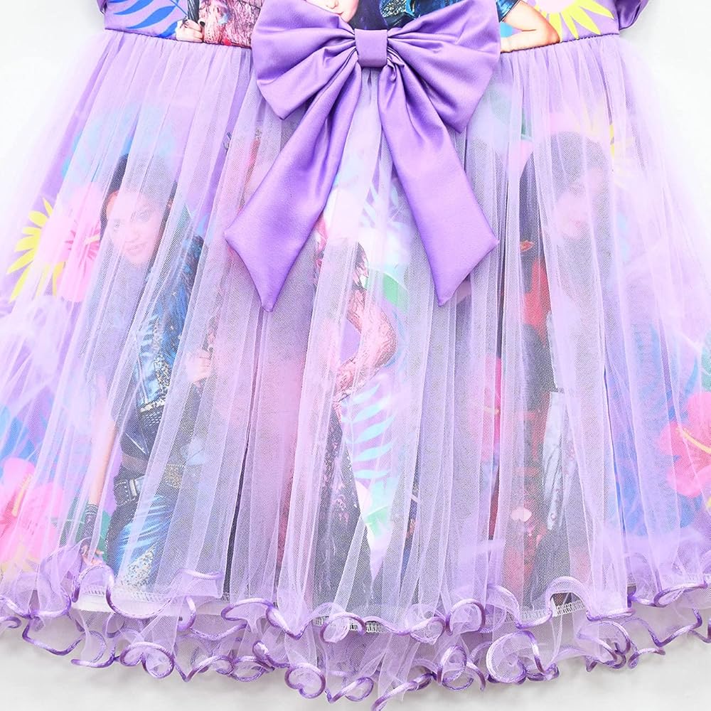 VARWANEO Descendants 3 Costume Dress Birthday Party Supplies Outfits for Girls Princess Dress Up Tulle Mesh Dress (Purple, 5-6X)