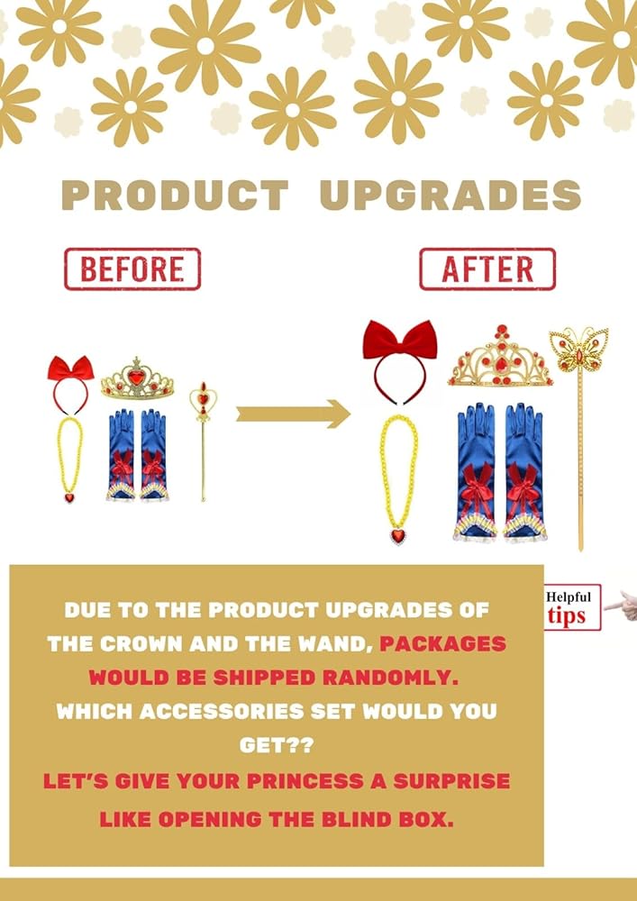 ♦ FEATURES: Short Puff Sleeves, Color Block, Tulle/Lace or Sequins Spliced, Bow knot Decor, Snowflakes, Lace or Yellow Solid Hemline, Zipper closure, (Accessories Set), etc.