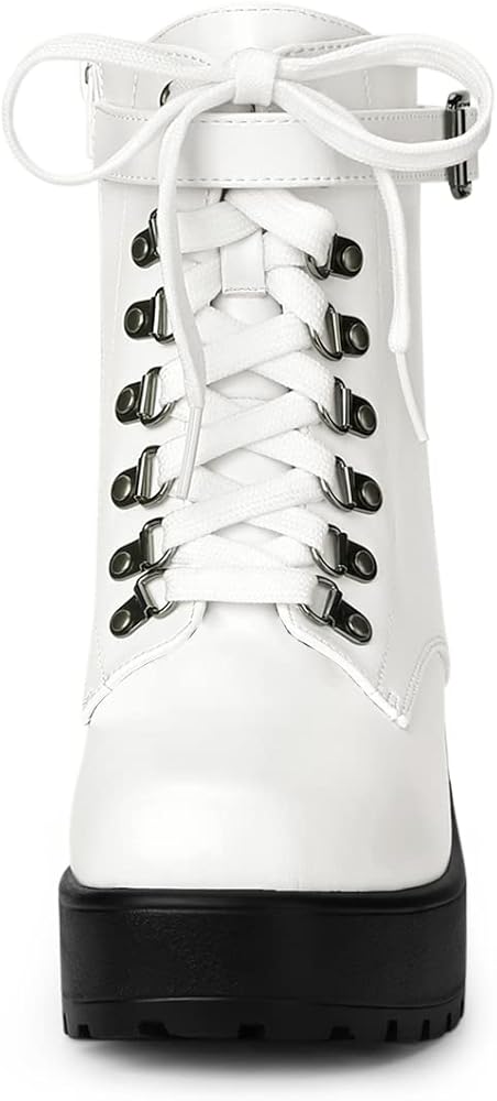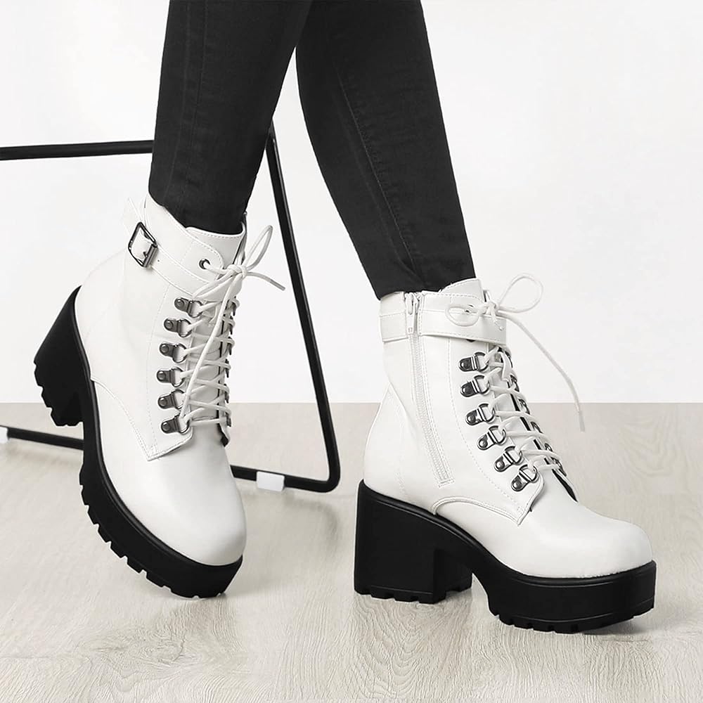 - Platform Ankle Boots, Combat Boots, Zip Closure, Lace Up Decor