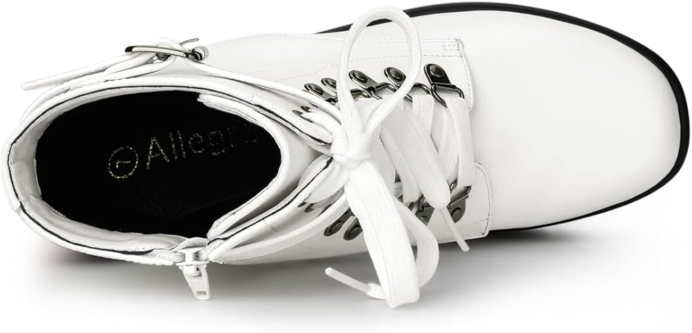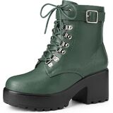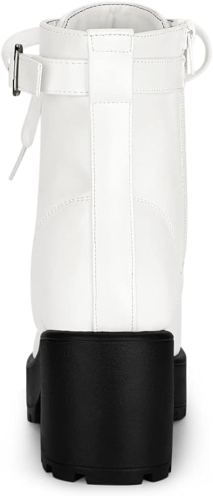 Allegra K Women's Zip Chunky Heel Platform Ankle Combat Boots