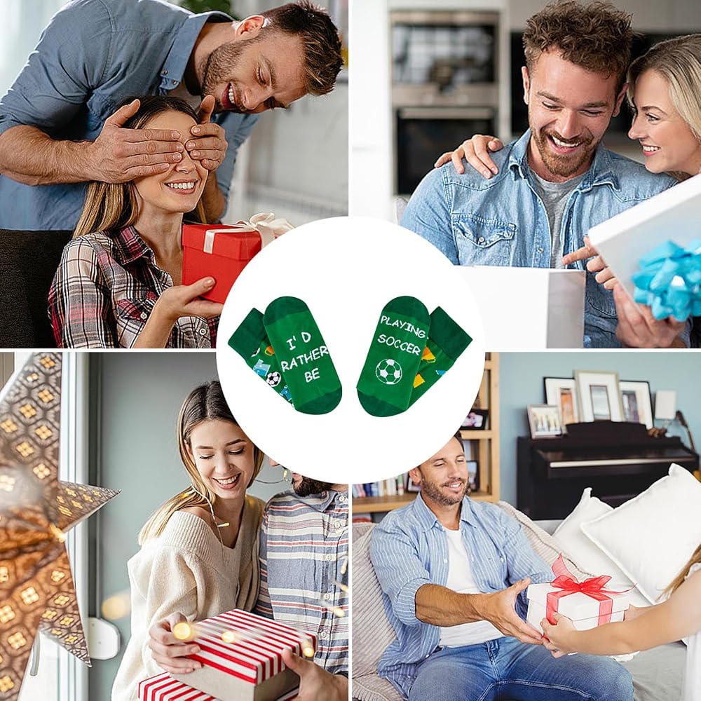 Package included 1 pair novelty socks with "I'd Rather Be Playing Soccer"
