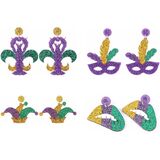 You will receive 2 pairs vibrant acrylic Mardi Gras earrings. Each set of earrings boasts a different holiday design and style ,adding a little sparkle yet alluring element to your Mardi Gras costume outfits. Share them with family and friends, let you all be the focus of the crowd during the Mardi Gras celebration.